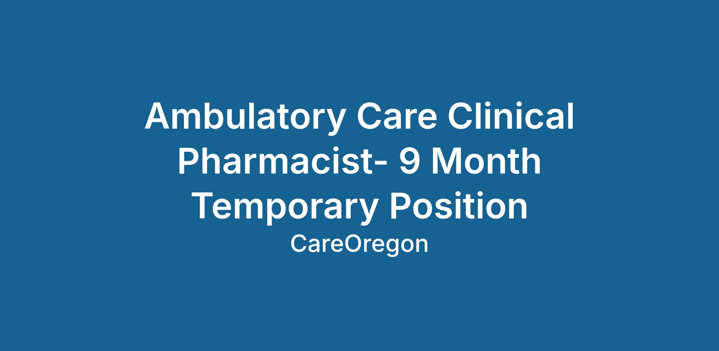 Ambulatory Care Clinical Pharmacist- 9 Month Temporary Position