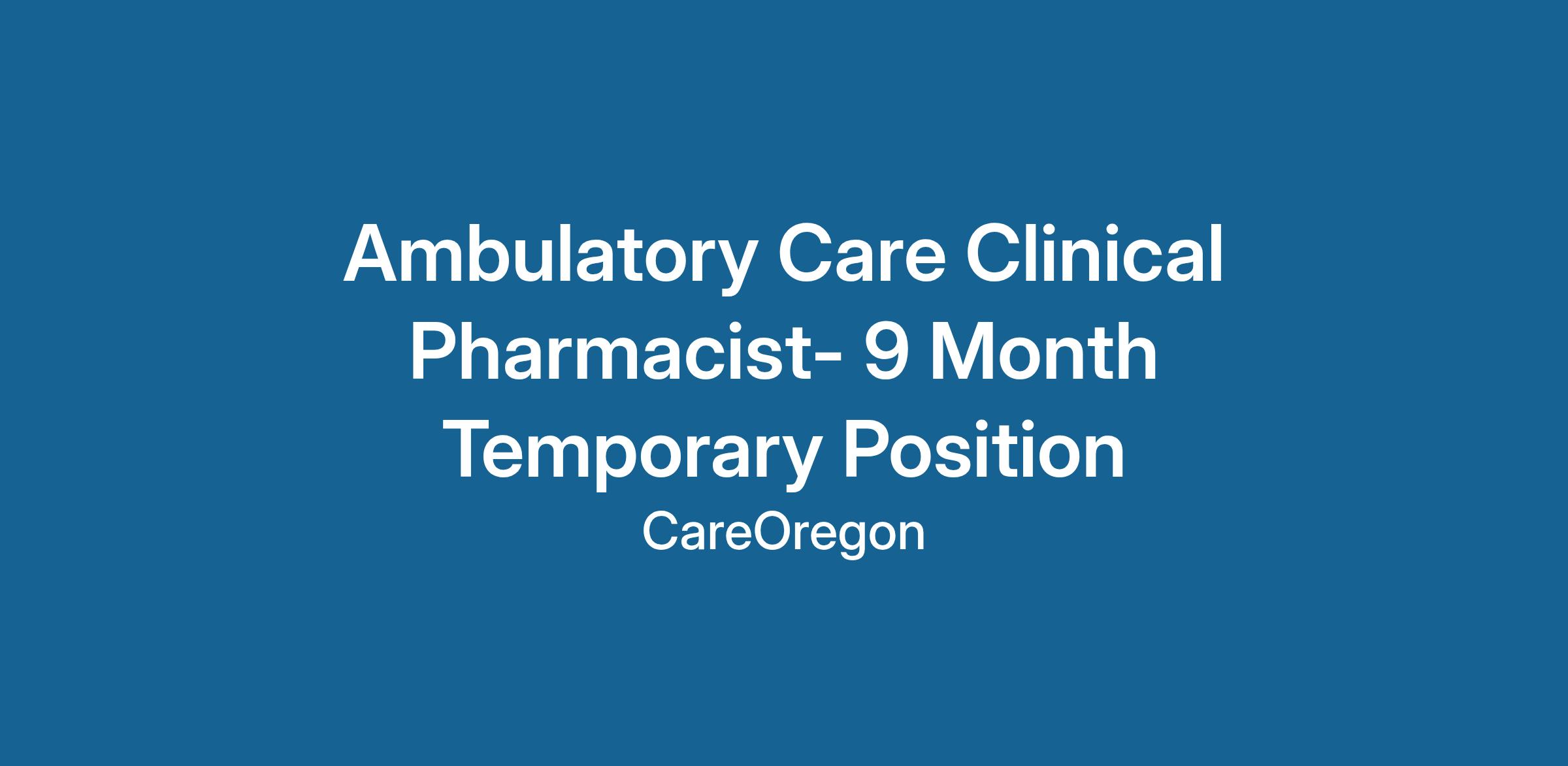 Ambulatory Care Clinical Pharmacist- 9 Month Temporary Position