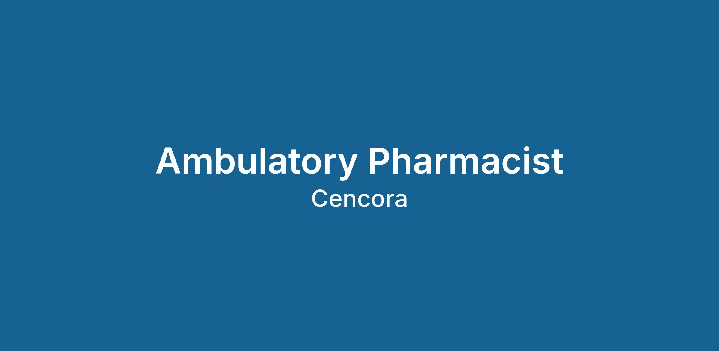 Our team members are at the heart of everything we do. At Cencora, we are united in our responsibility to create healthier futures, and every person here is essential to us being able to deliver on that purpose. If you want to make a difference at the center of health, come join our innovative company and help us improve the lives of people and animals everywhere. Apply today!