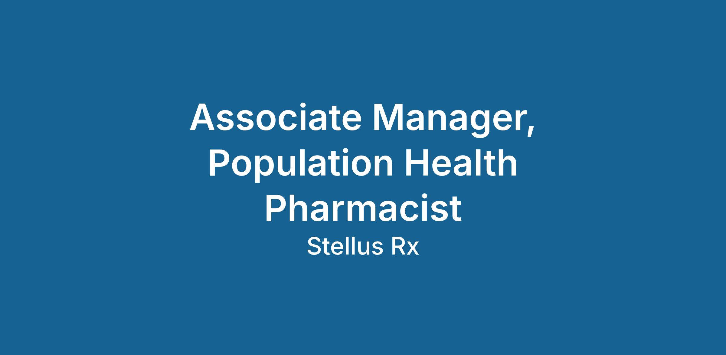 • The Associate Manager, Population Health Pharmacist plays a pivotal role in developing, implementing, and overseeing strategies