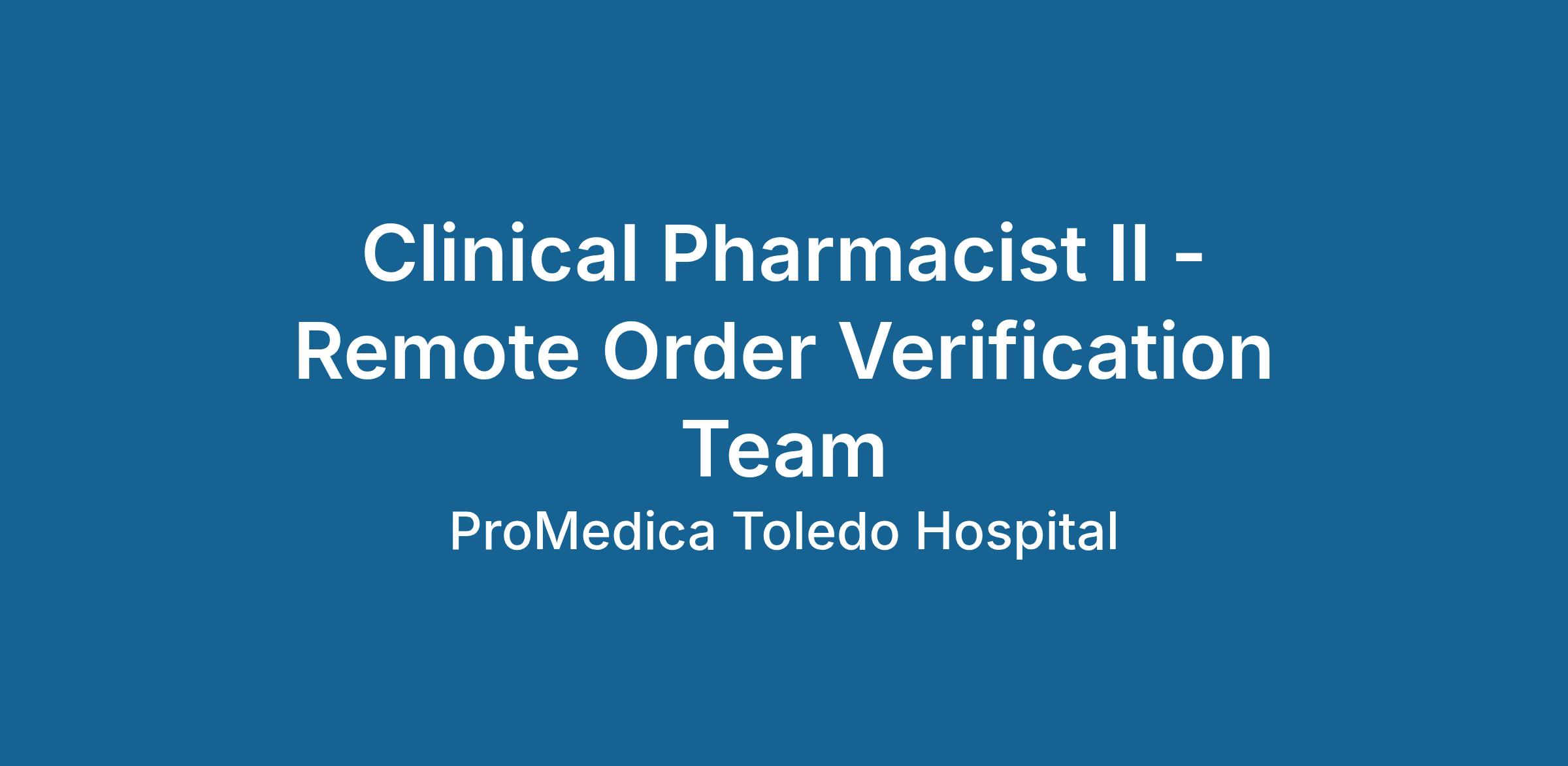 Pharmacy Remote Order VerificationWeekly Hours: