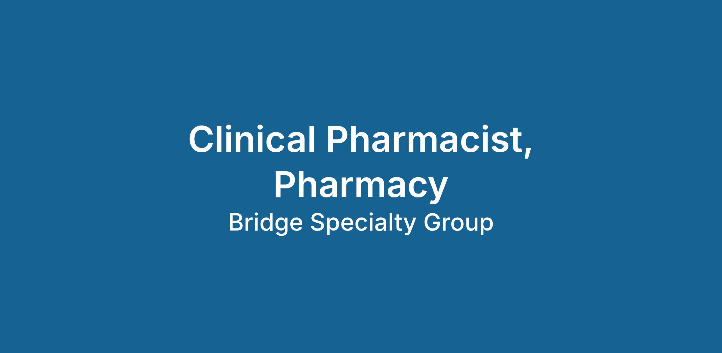 Clinical Pharmacist, Pharmacy