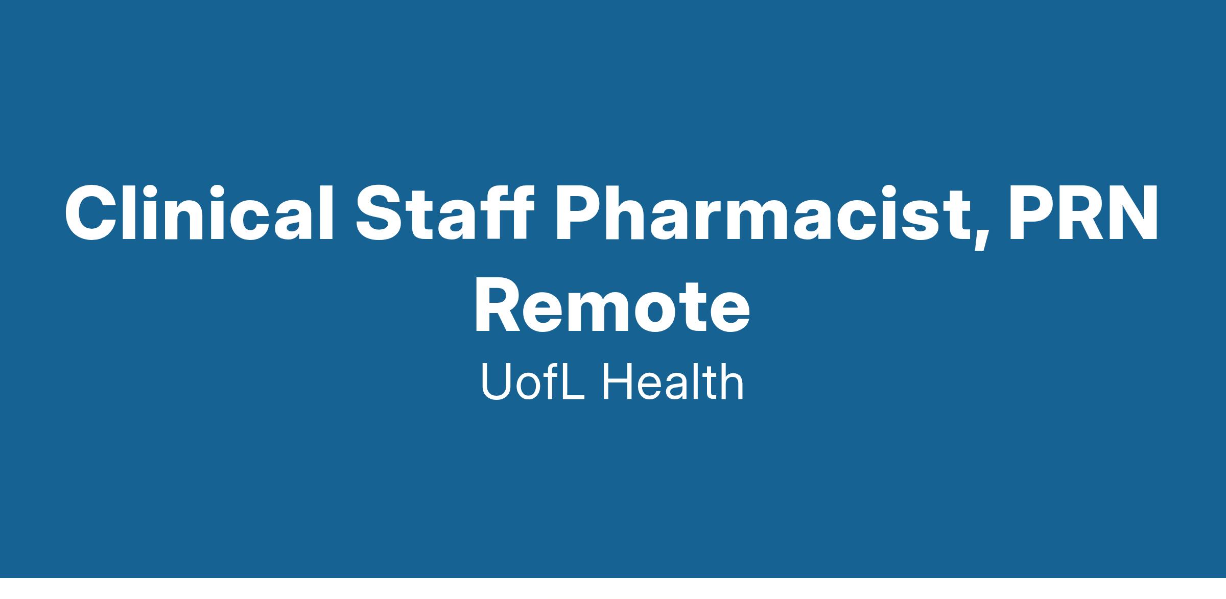 The Clinical Staff Pharmacist provides comprehensive pharmaceutical care to patients and members of the healthcare team to ensure optimal medication therapy outcomes. The Clinical Staff Pharmacist performs medication order evaluation and verification, drug distribution, sterile and extemporaneous compounding, technical supervision, and clinical services.