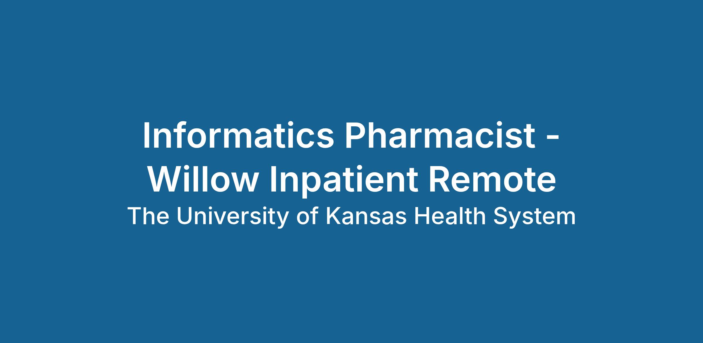 Informatics Pharmacist - Willow Inpatient Remote