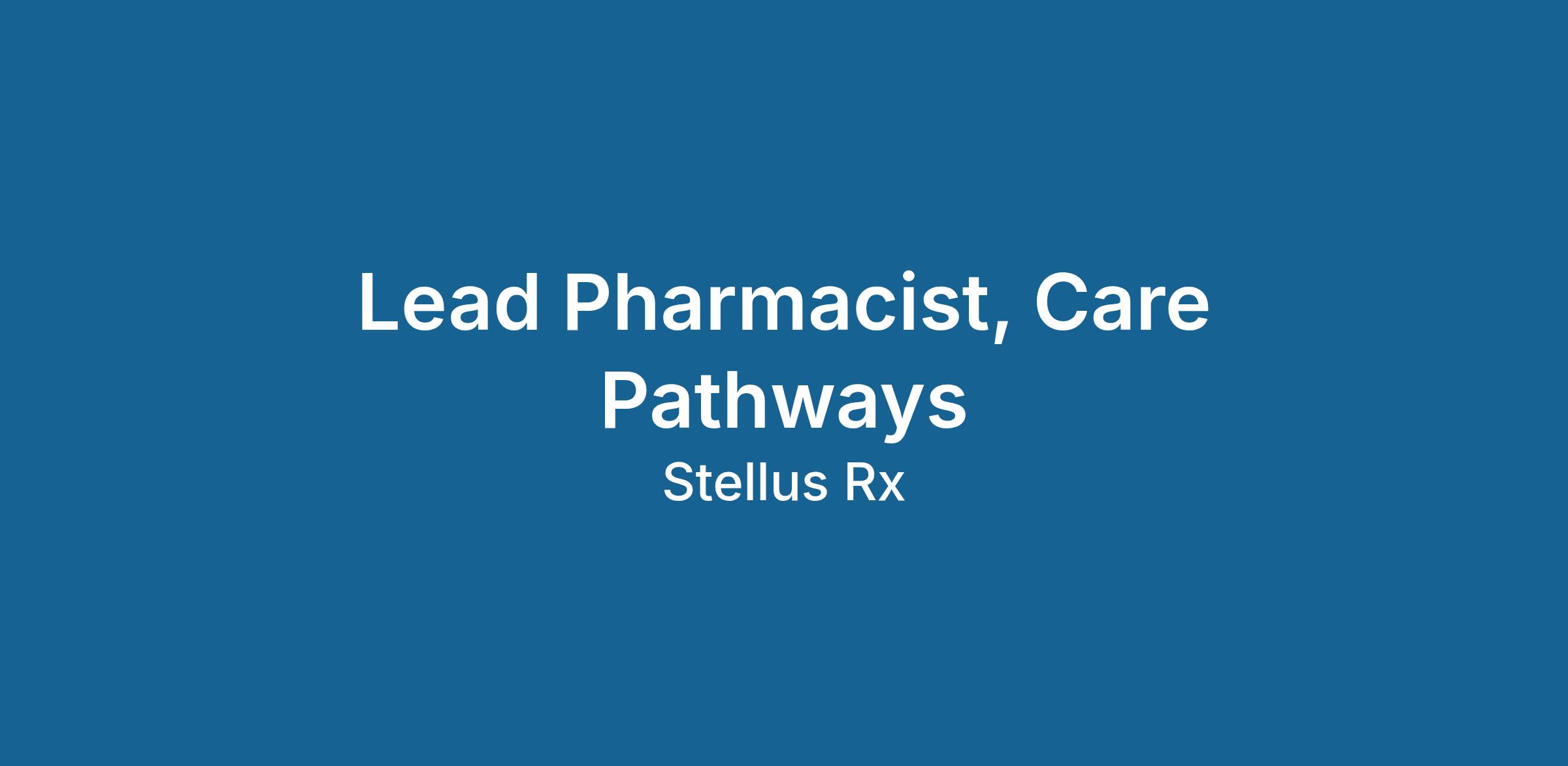 The Lead Pharmacist, Care Pathways for Stellus Rx will help our communities thrive as a key member of the Operations Team
