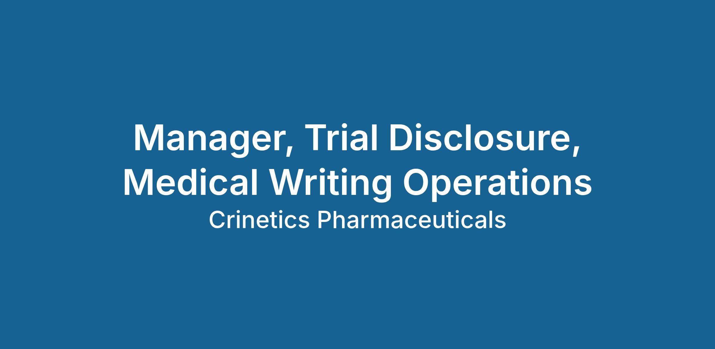 The Manager of Medical Writing Operations - Trial Disclosure role is responsible for clinical trial transparency and disclosure activities, including initial trial postings, results postings, document redaction, and plain language summary development. The role is responsible for ensuring accurate and compliant public release of clinical trial information while working in close collaboration with cross-functional teams. This role is also responsible for redacted documentation in accordance with company confidential information (CCI) and the General Data Protection Regulation.