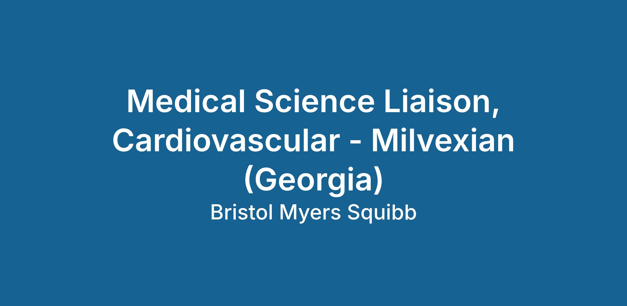 R1599270 : Medical Science Liaison, Cardiovascular - Milvexian (Georgia)