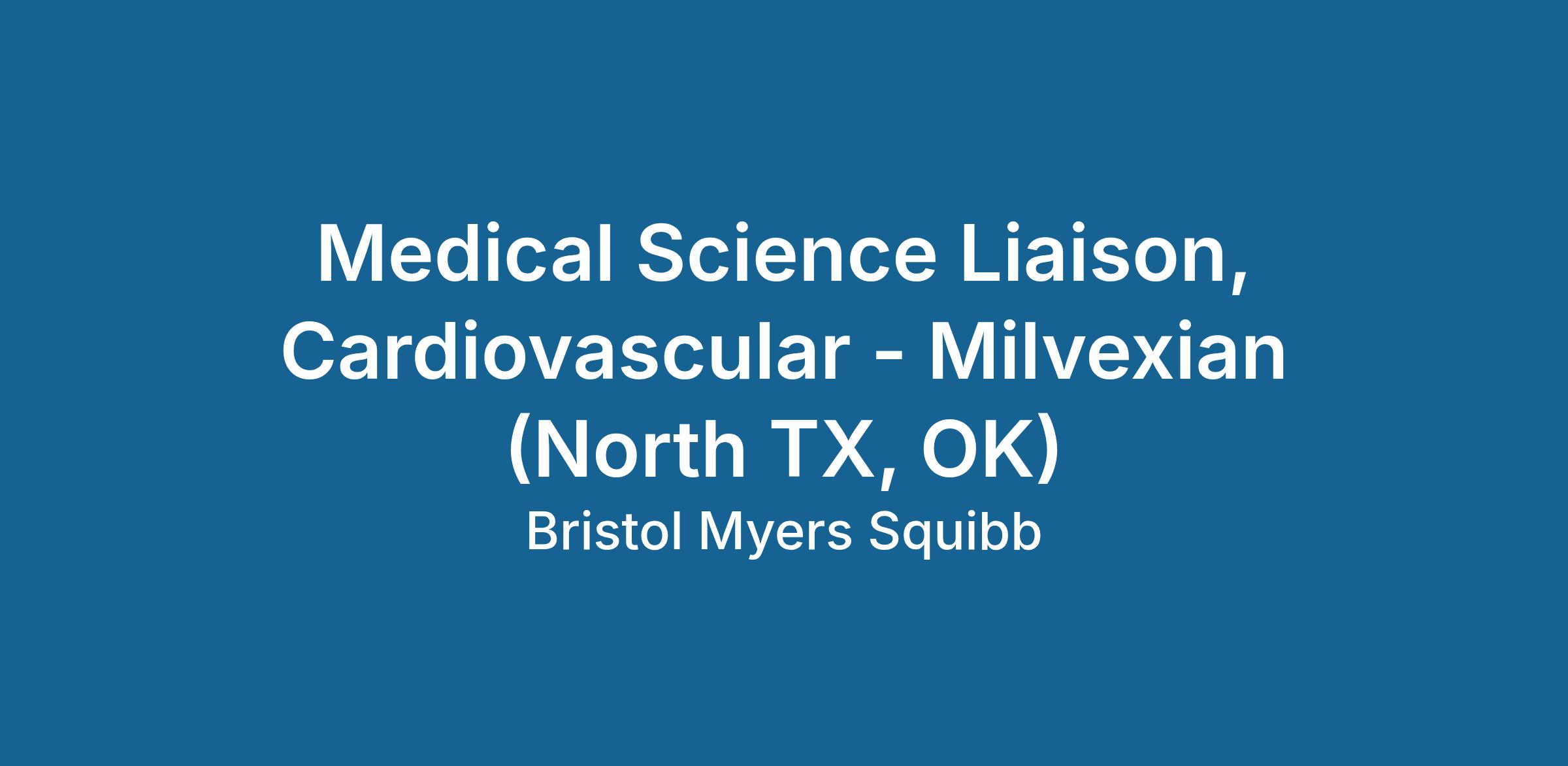 R1599254 : Medical Science Liaison, Cardiovascular - Milvexian (North TX, OK)