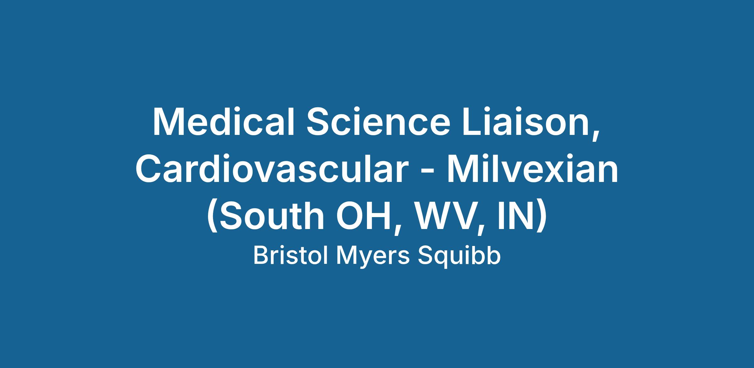 R1599268 : Medical Science Liaison, Cardiovascular - Milvexian (South OH, WV, IN)