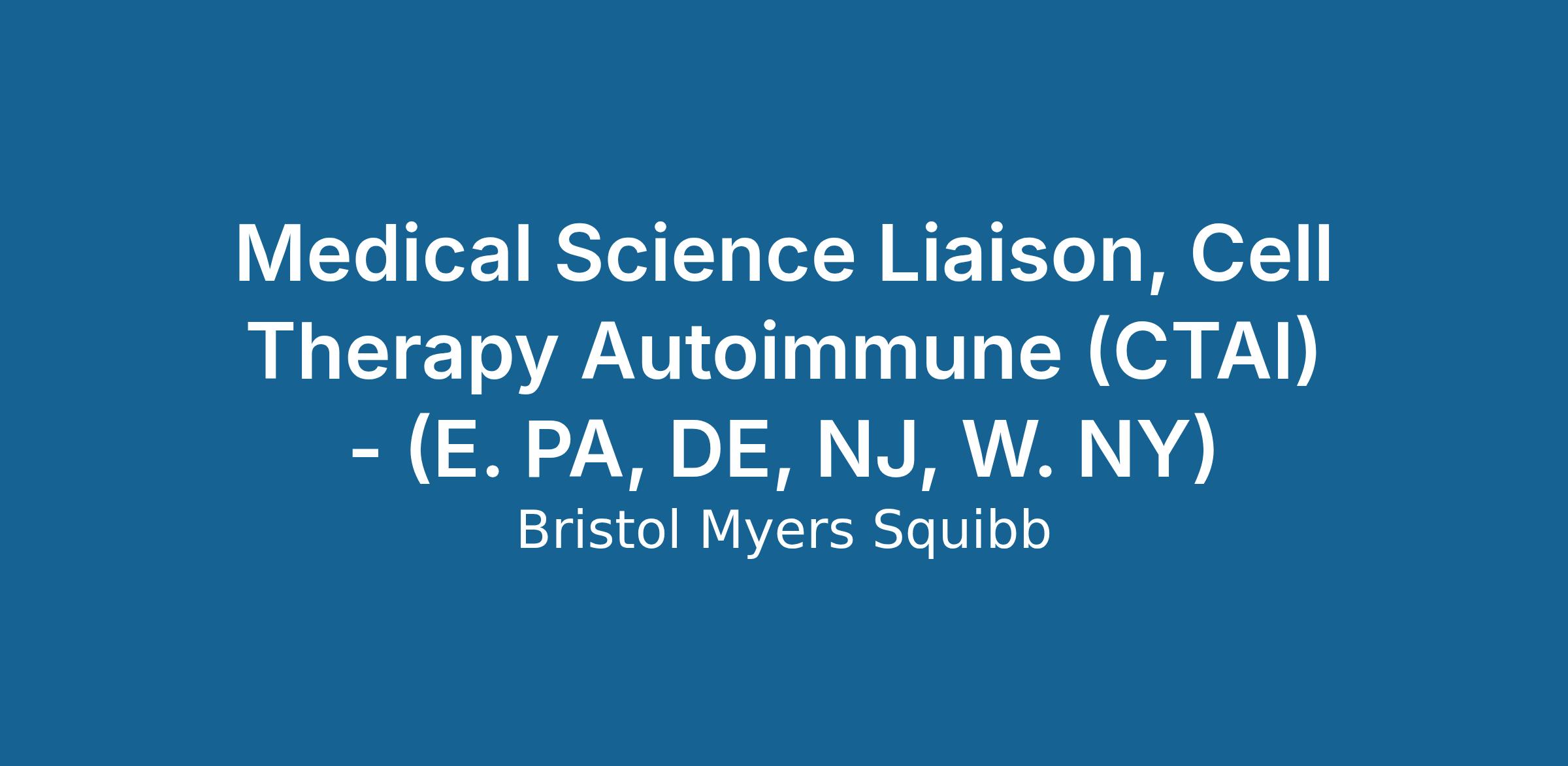 R1600457 : Medical Science Liaison, Cell Therapy Autoimmune (CTAI) - (E. PA, DE, NJ, W. NY)