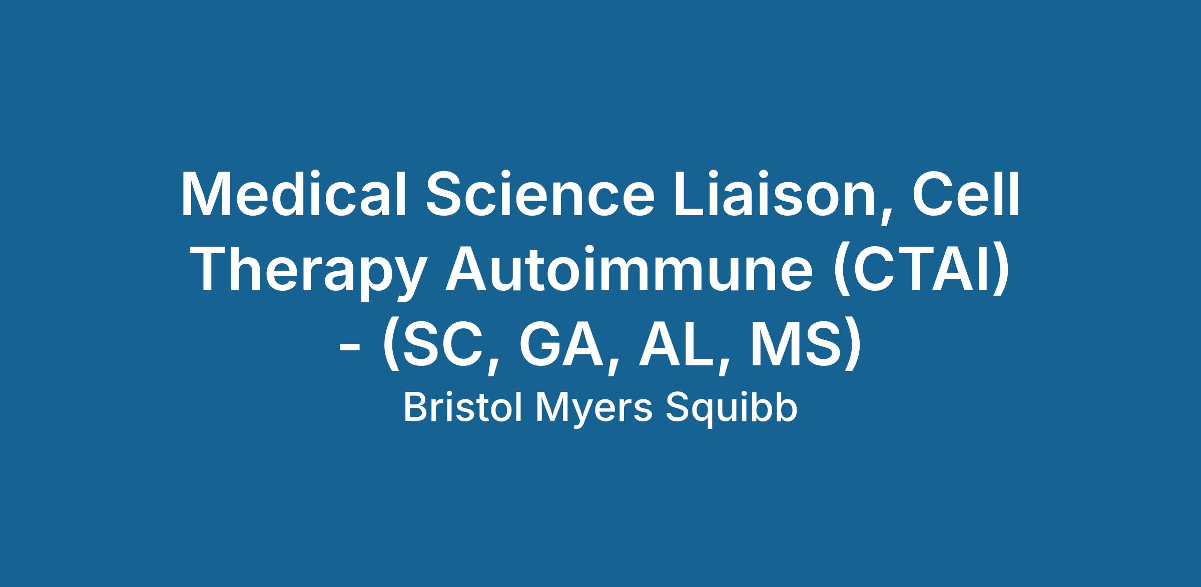 R1600460 : Medical Science Liaison, Cell Therapy Autoimmune (CTAI) - (SC, GA, AL, MS)