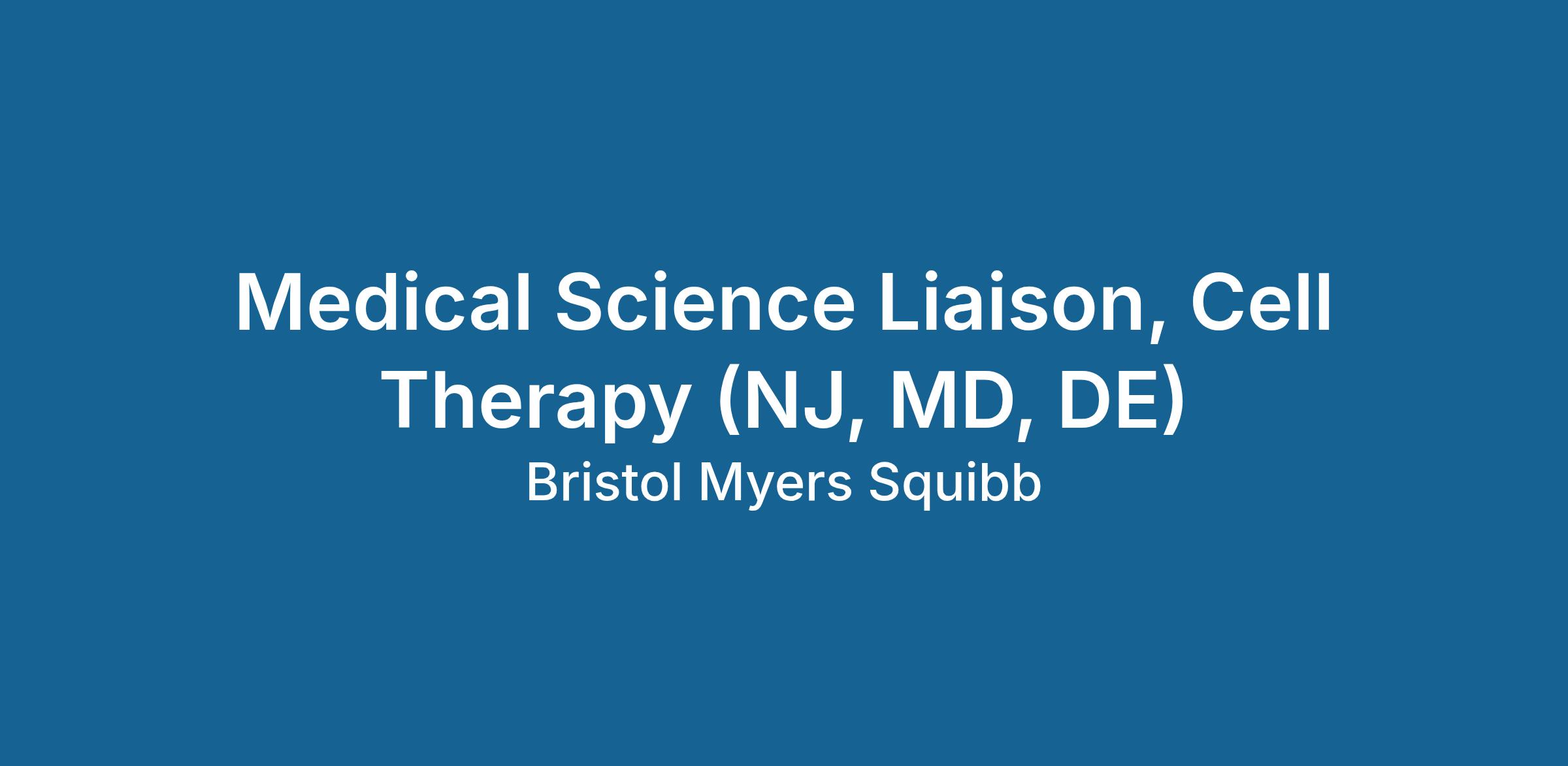 R1600711 : Medical Science Liaison, Cell Therapy (NJ, MD, DE)