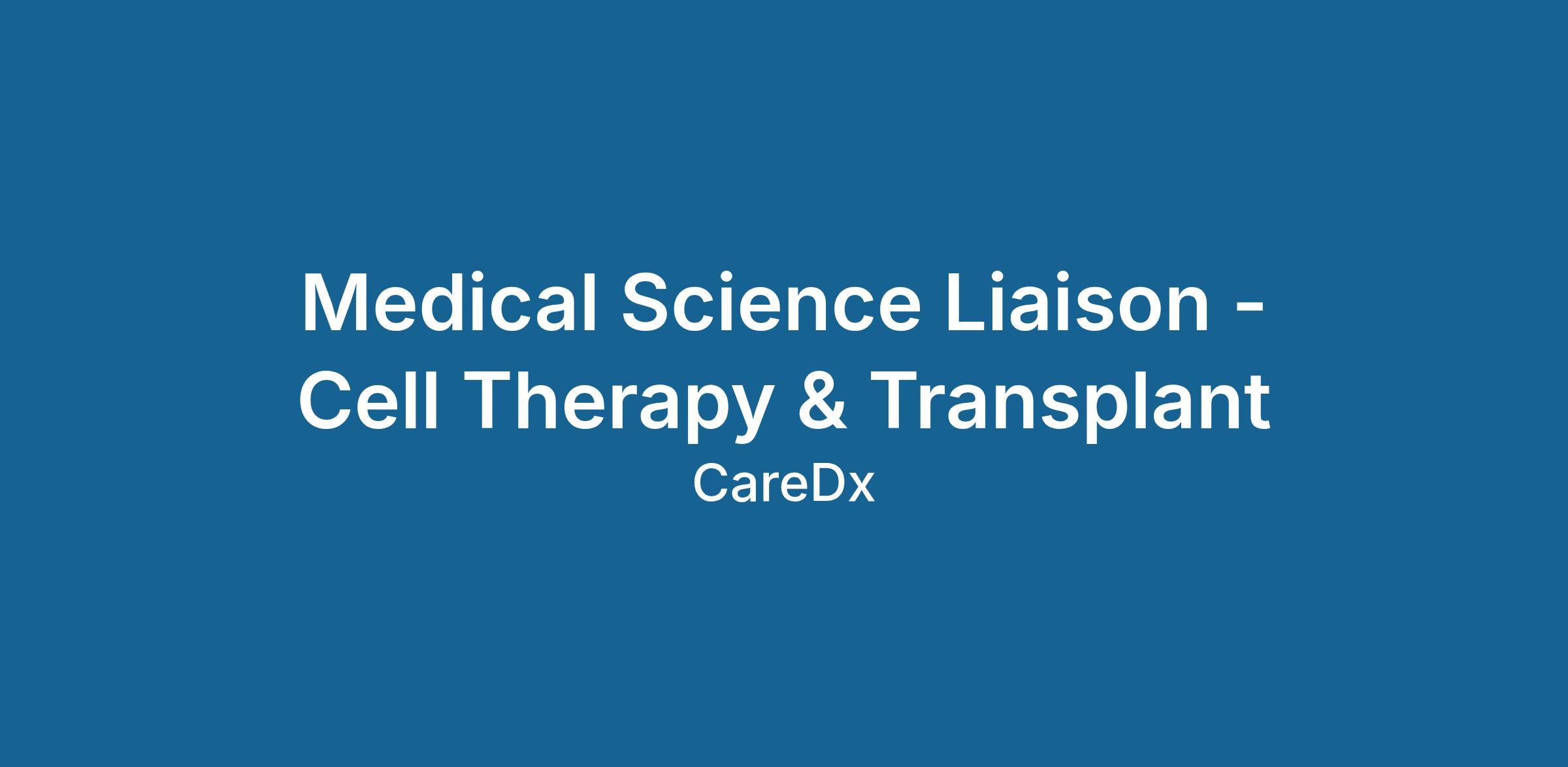 The Medical Science Liaison (MSL) for Cell Therapy & Transplant (CTT) will collaborate directly with the Medical Director and other cross functional stakeholders to support initiation & management of a pivotal clinical study for AlloHeme, a blood based NGS relapse prediction test for post bone marrow transplant AML & MDS patients. Additionally, the MSL will be responsible for scientific exchange and advice- seeking with key opinion leaders (KOLs) in bone marrow and cell therapy transplant. Once the AlloHeme test is commercially available, the MSL will educate physicians and other key stakeholders at transplant centers about the available data and the clinical value of the AlloHeme test. In addition to AlloHeme, the MSL will be involved in establishing research collaborations and engaging with KOLs to support additional product launches including molecular testing for post cell therapy monitoring. This is an exciting opportunity to help shape CareDx’s market entry into Cell Therapy & Transplant!