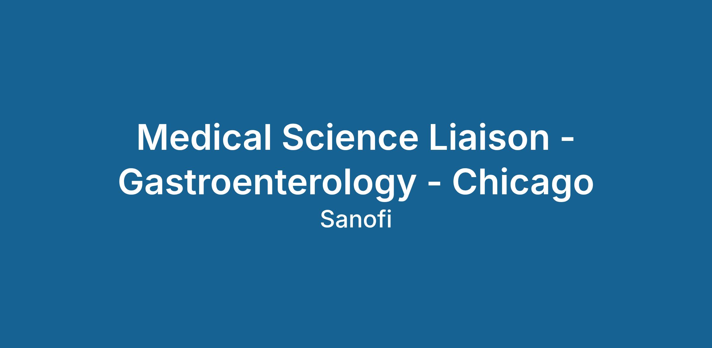 Job Title: Medical Science Liaison - Gastroenterology - Chicago