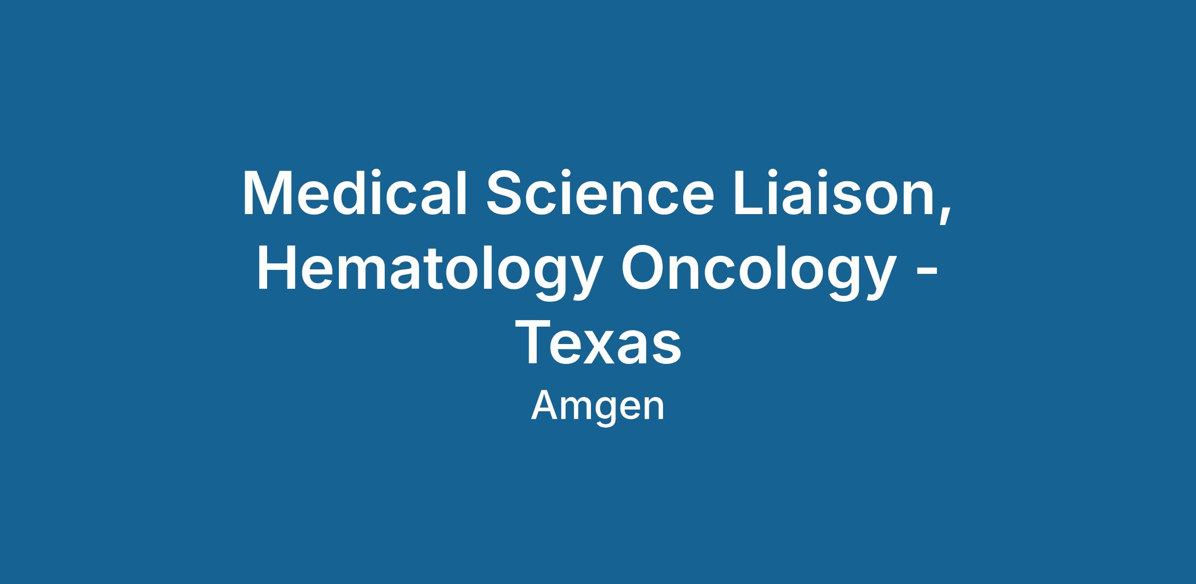 Let’s do this. Let’s change the world. In this vital role you will interact with Oncology Healthcare Decision Makers to communicate and advance the scientific platform as aligned with Amgen's goals and objectives, particularly in the areas of hematology and prostate cancers. The MSL is an integral position in ensuring that accurate, clear, and valued information regarding our scientific platform is communicated to multiple levels within the medical community. The successful MSL will communicate complex innovative scientific information and research concepts to healthcare decision makers including but not limited to those at Academic Medical Centers. The role may also include clinical and pharmacoeconomic value discussions with payers and formulary decision makers. The MSL is also responsible for identifying and training members of Amgen's speakers’ bureau to ensure they are updated on new data. In addition, the MSL will provide feedback based on field interactions and scientific support consistent with Amgen’s goals and objectives.