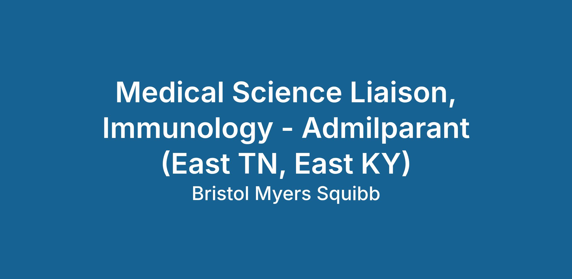 R1600364 : Medical Science Liaison, Immunology - Admilparant (East TN, East KY)