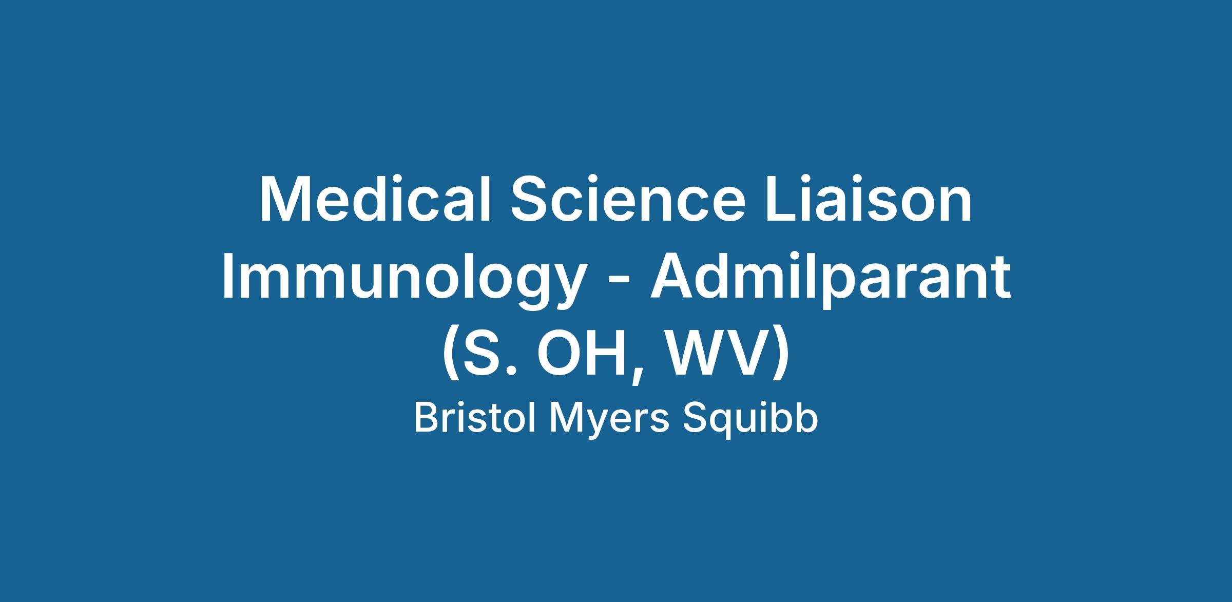 R1600859 : Medical Science Liaison Immunology - Admilparant (S. OH, WV)