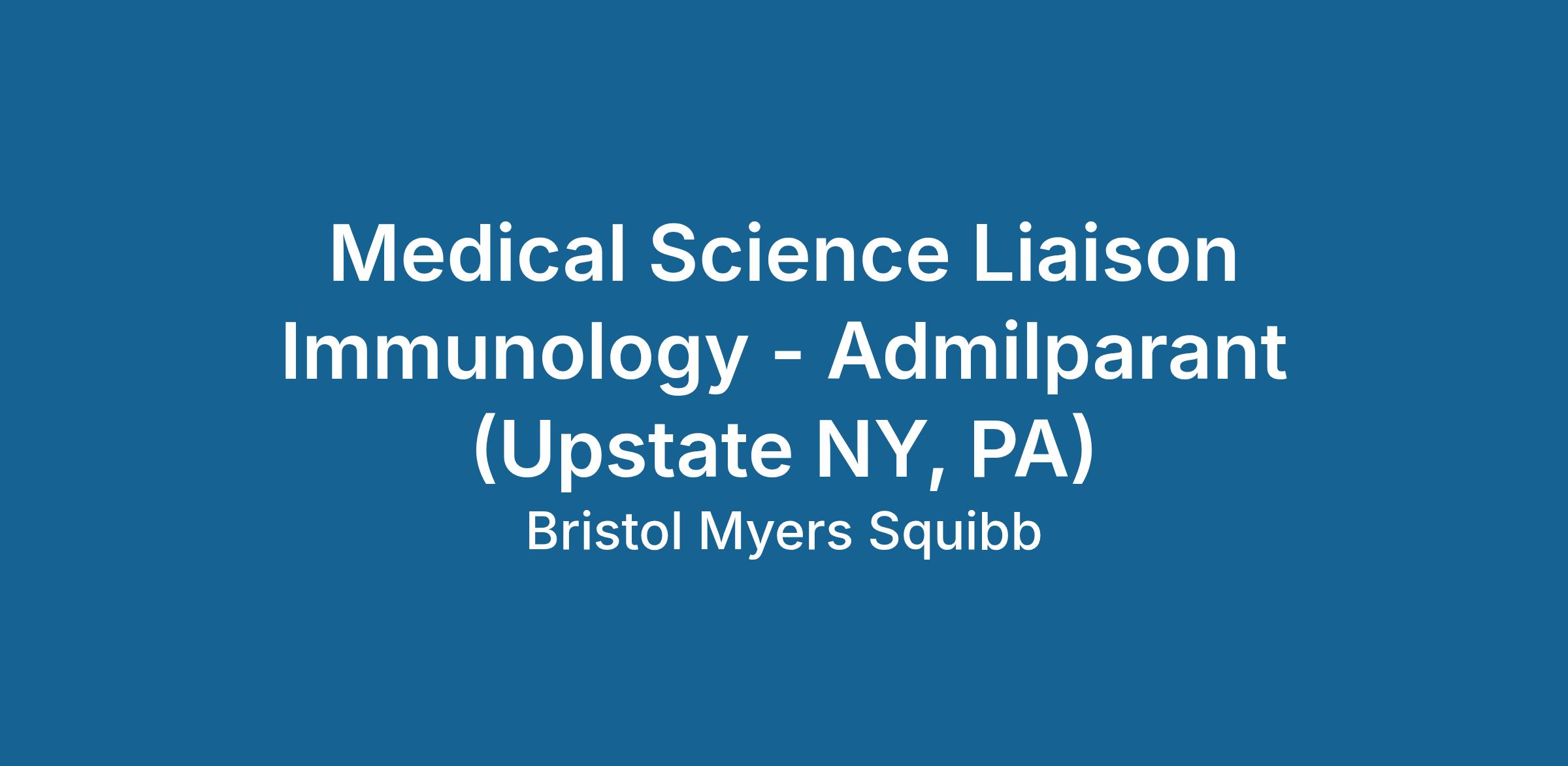 R1600841 : Medical Science Liaison Immunology - Admilparant (Upstate NY, PA)