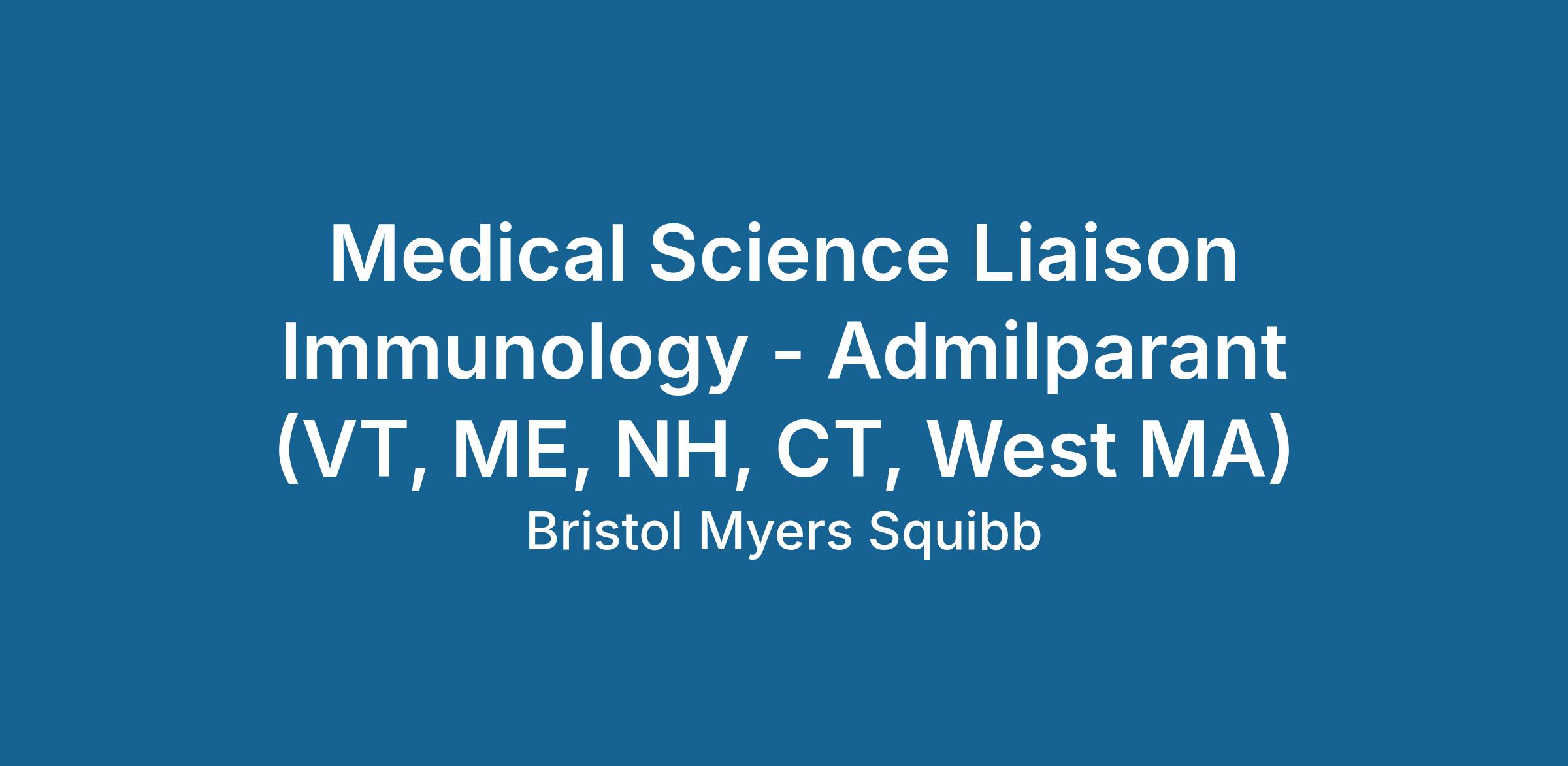 R1600869 : Medical Science Liaison Immunology - Admilparant (VT, ME, NH, CT, West MA)