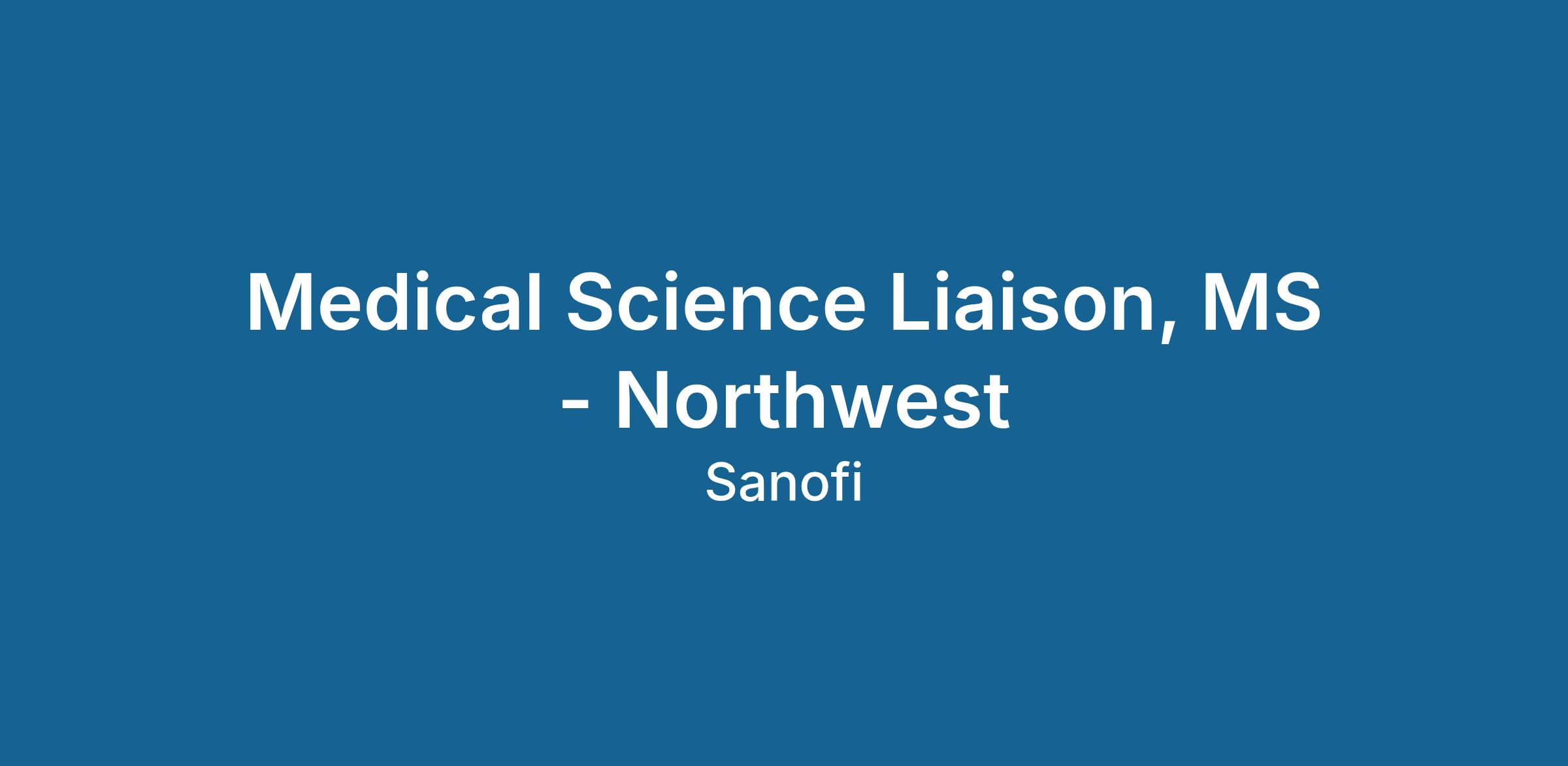 Job Title: Medical Science Liaison, MS - Northwest