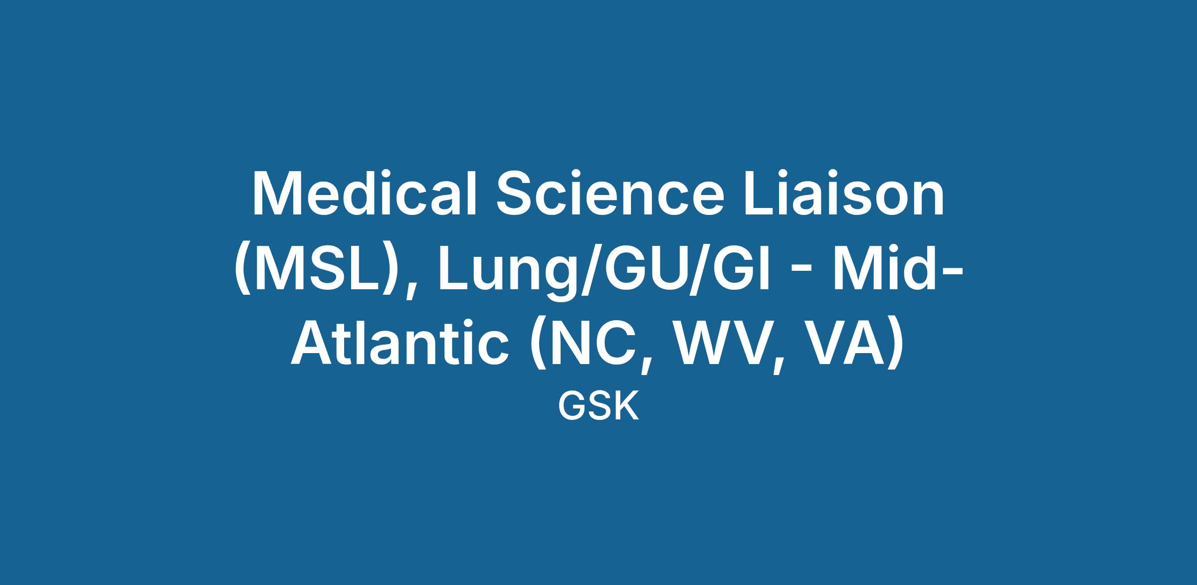 Medical Science Liaison (MSL), Lung/GU/GI - Mid-Atlantic (NC, WV, VA)