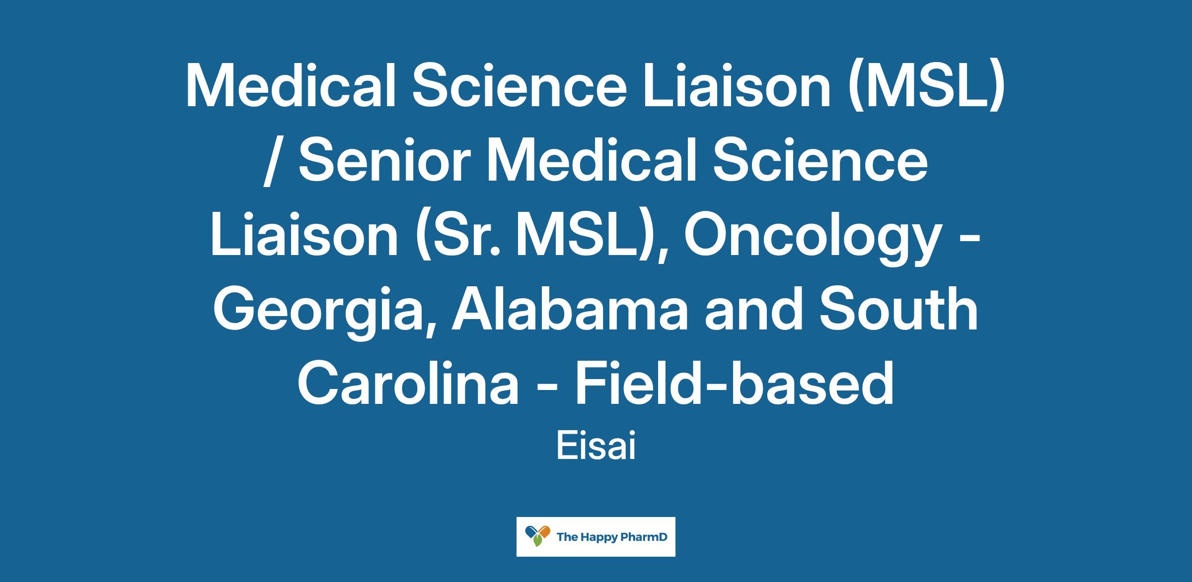 The annual base salary range for the Medical Science Liaison (MSL) / Senior Medical Science Liaison (Sr. MSL), Oncology - Georgia, Alabama and South Carolina - Field-based is from :$160,100-$210,100
