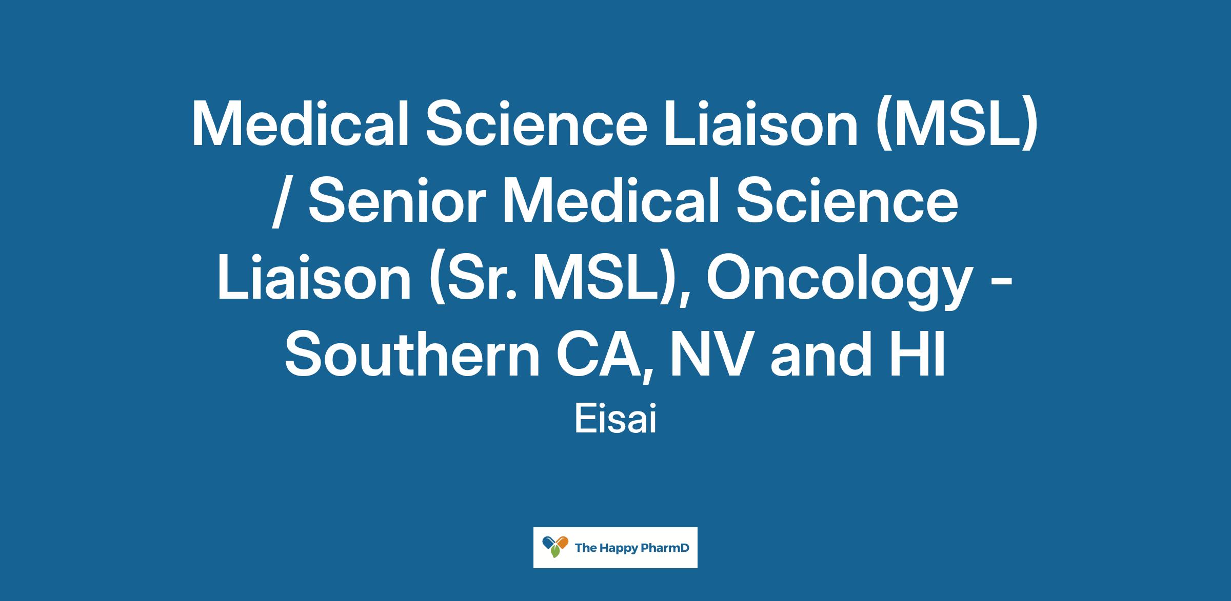 The base salary range for the Medical Science Liaison (MSL) / Senior Medical Science Liaison (Sr. MSL), Oncology - Southern CA, NV and HI is from :160,100-210,100