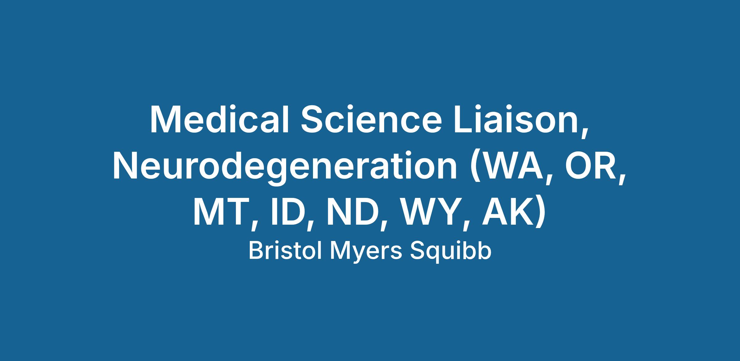 R1601081 : Medical Science Liaison, Neurodegeneration (WA, OR, MT, ID, ND, WY, AK)