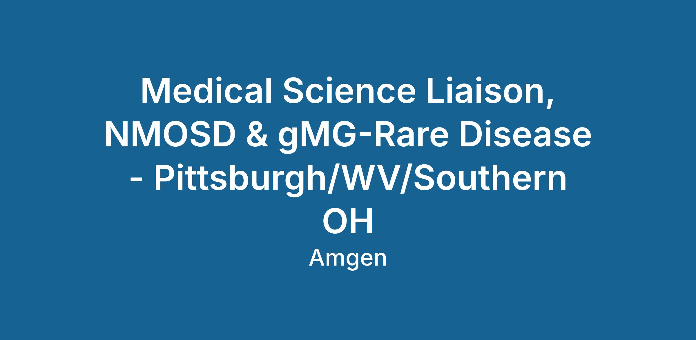 Medical Science Liaison, NMOSD & gMG-Rare Disease Pittsburgh/WV/Southern OH