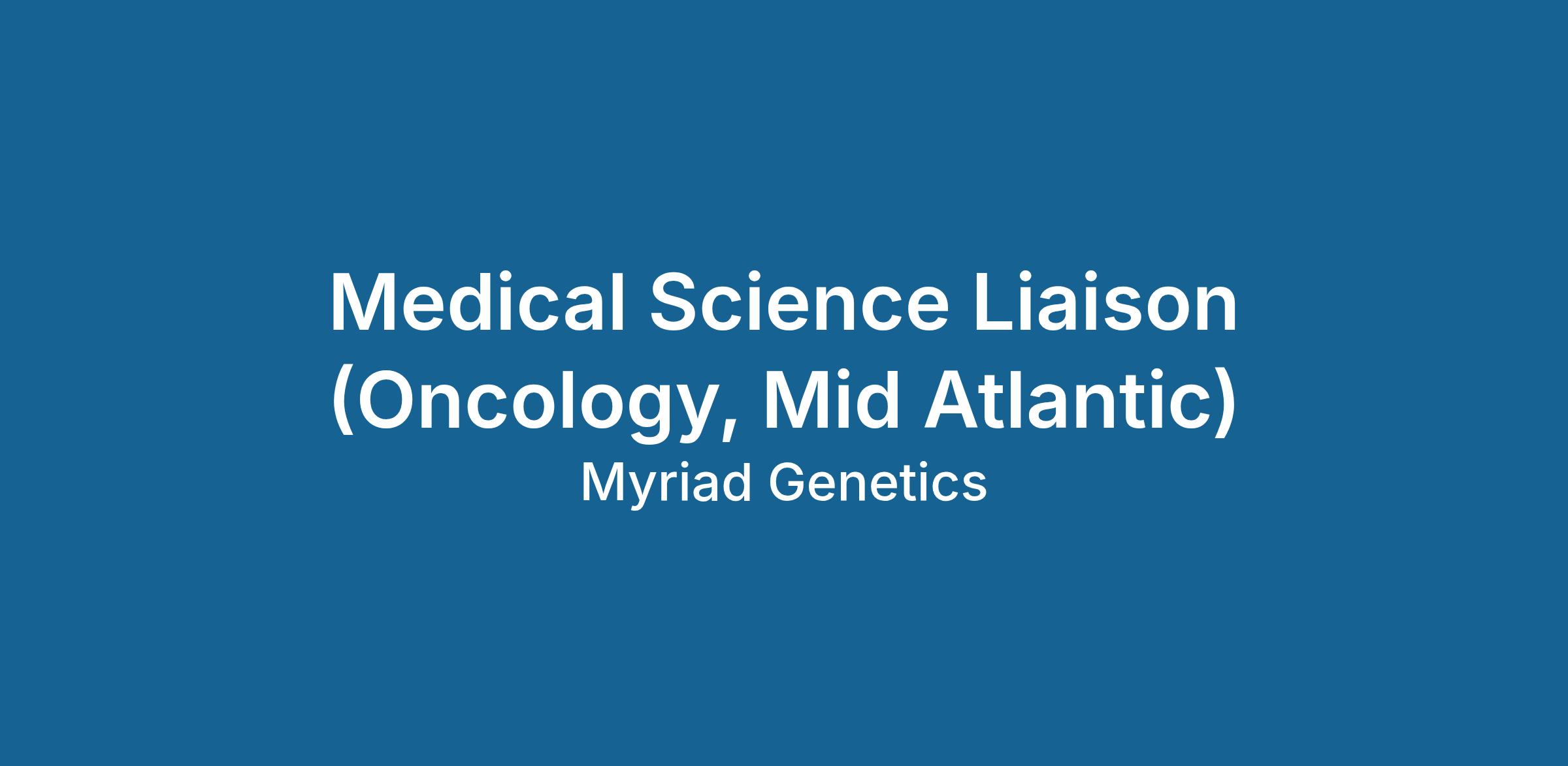 Myriad Genetics is seeking a qualified individual to fill the role of Medical Science Liaison (MSL) within the Oncology Business Unit. The MSL position is a field-based scientific and clinical expert role. We are currently looking for an individual to strategically support our oncology portfolio of hereditary testing, companion diagnostics, and all current and future pan-omic testing. MSLs play a pivotal role in communicating Myriad’s scientific advancements to healthcare professionals. The candidate must possess a unique blend of strong business acumen, market awareness, and clinical expertise, to serve as a vital conduit of information and collaboration with cross-functional internal stakeholders. The successful candidate will join Myriad’s Medical Affairs team and will report to the Oncology MSL Manager who reports to the Oncology Medical Affairs Vice President.