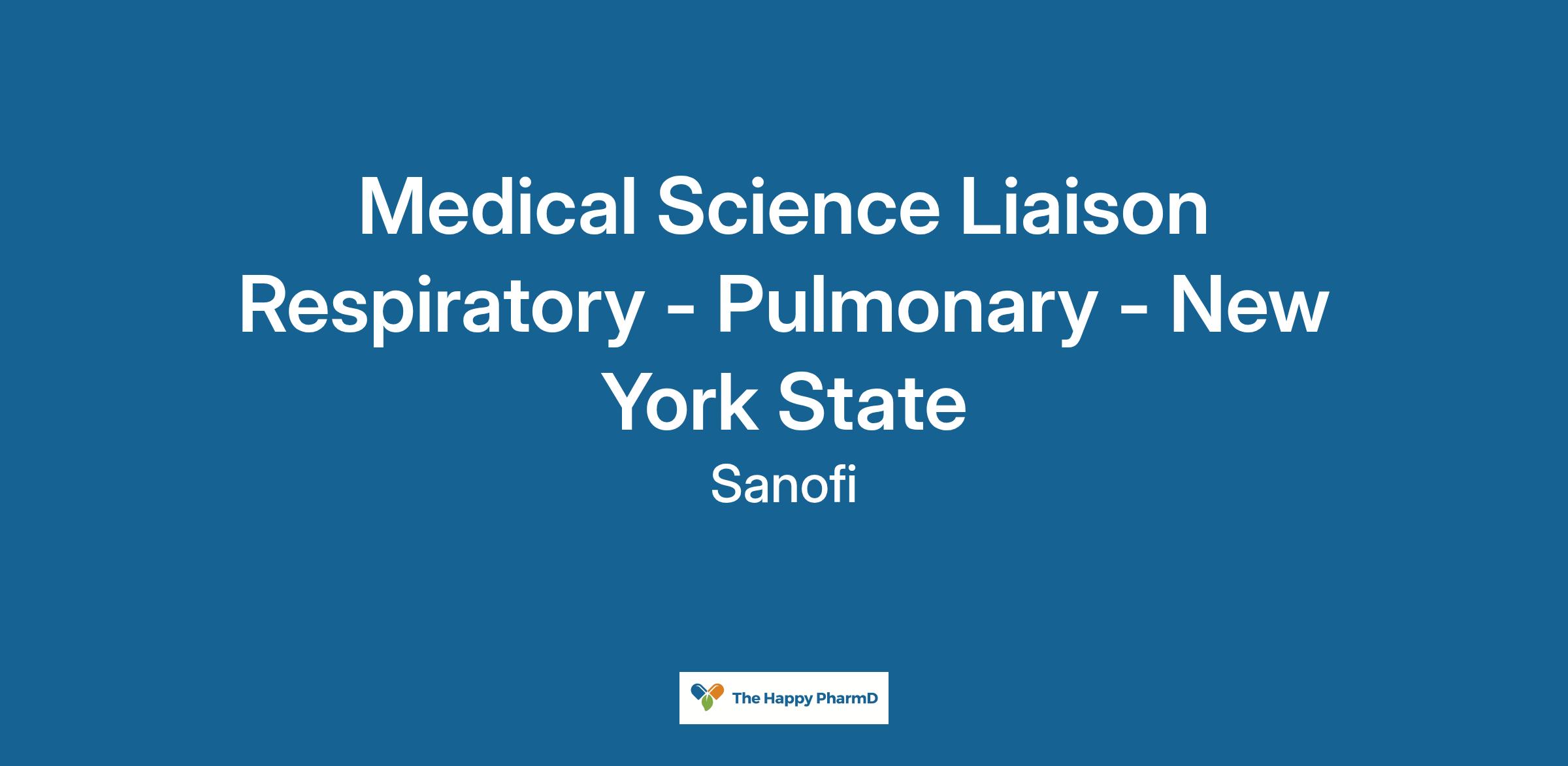 Job Title: Medical Science Liaison Respiratory - Pulmonary - New York State