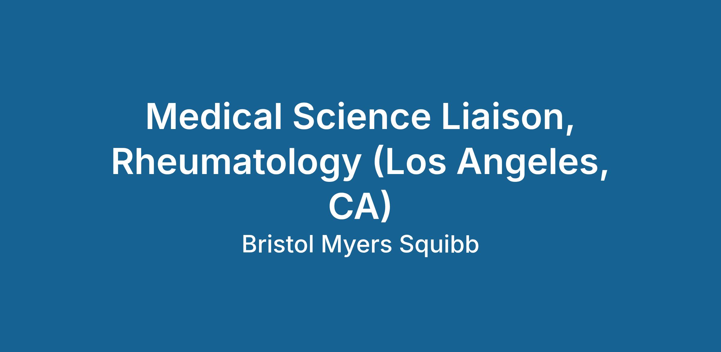 R1598570 : Medical Science Liaison, Rheumatology (Los Angeles, CA)