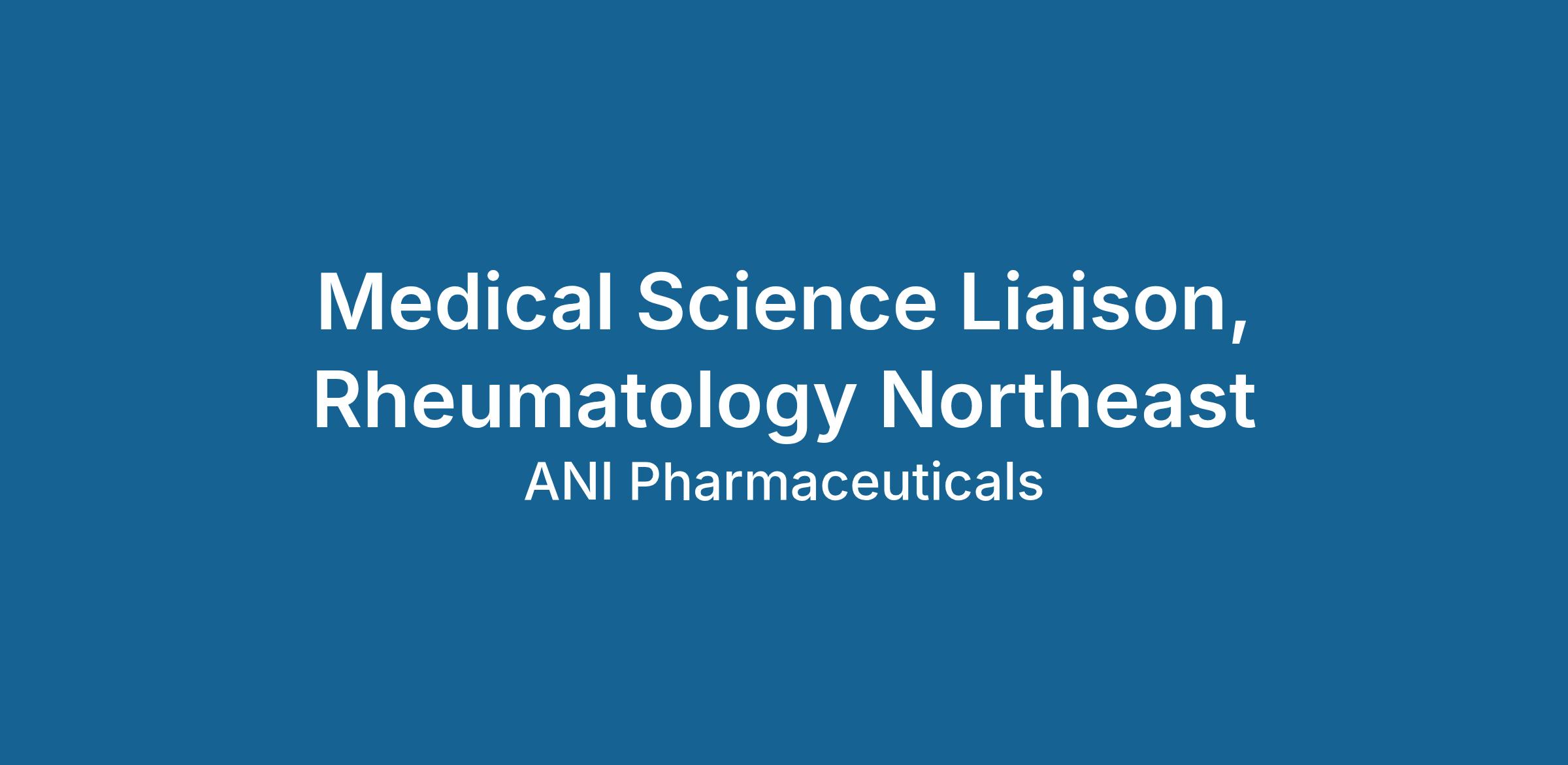 The Medical Science Liaison will serve as a liaison to the medical/scientific community and will be responsible for establishing, developing, and maintaining relationships with medical experts in Rheumatology in the Northeastern US.