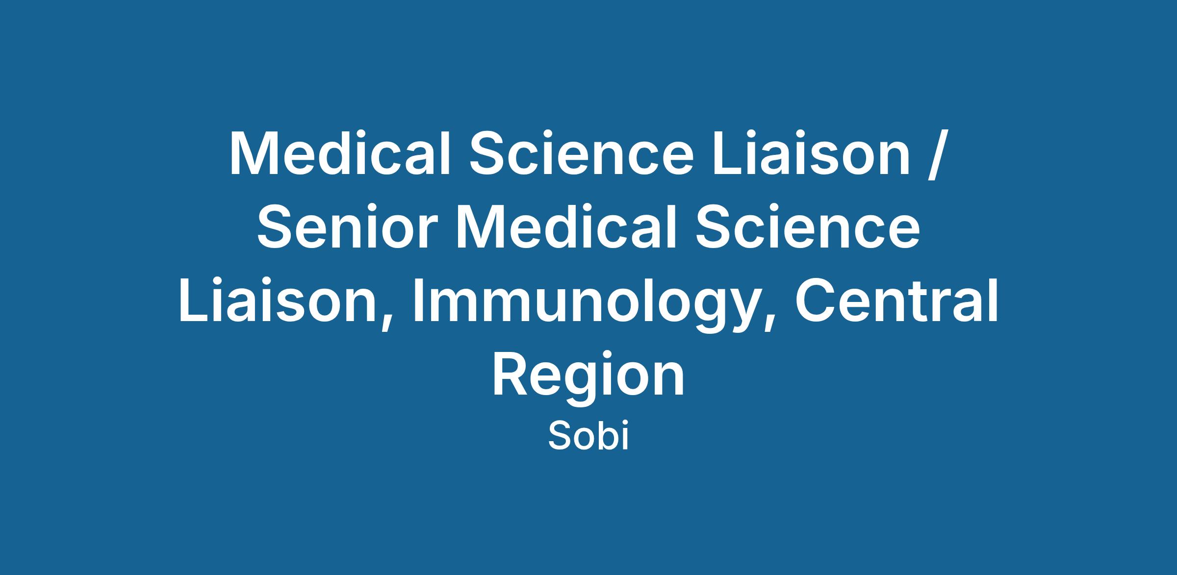 The Medical Science Liaison / Senior Medical Science Liaison serves as a highly trained, field-based scientific expert who engages with healthcare professionals to exchange clinical, scientific, and research knowledge. In accordance with regulatory and corporate guidelines, they will facilitate and build scientific relationships and collaborations with the medical/scientific community. This position interacts with local, regional, and national HCPs, societies, and organizations, and provides educational, scientific, and research support for the SOBI rare disease product portfolio in the Immunology franchise.