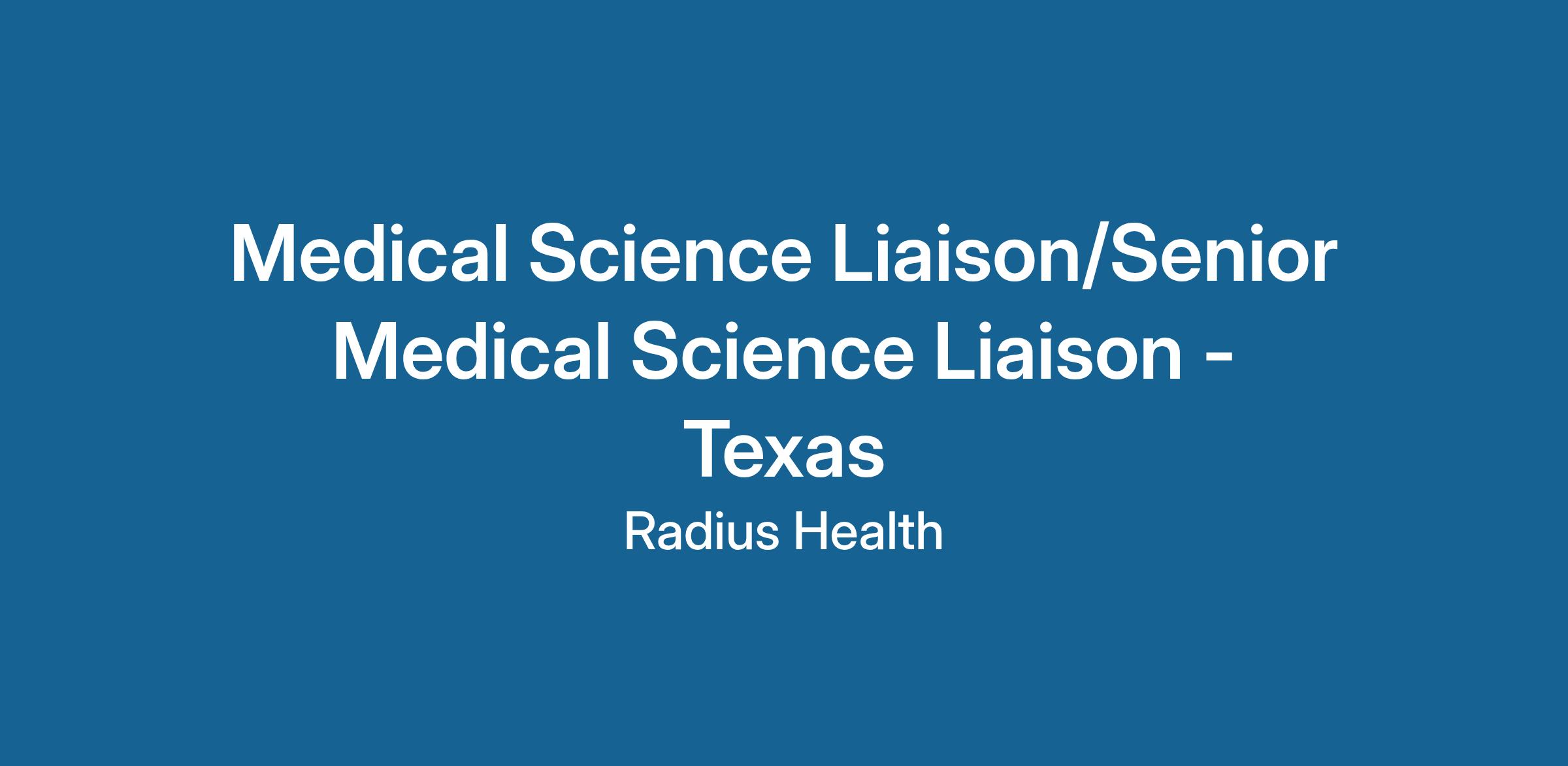 Radius Health is a global biopharmaceutical company dedicated to transforming the future for patient populations in bone health and related therapeutic areas. Our team works relentlessly to improve the lives of our patients, their caregivers, our communities, our partners, and each other. We live by our corporate values, and every employee has an unwavering commitment to contributing to our positive culture. We are currently recruiting for a field-based MSL/Senior MSL for the Texas territory. This territory includes North/West Texas, New Mexico, Colorado, Oklahoma, Arkansas and Memphis, TN. The ideal candidate will be located in the Dallas/Fort Worth metro area. This role may be considered at a Senior MSL level, depending on years of experience and qualifications.