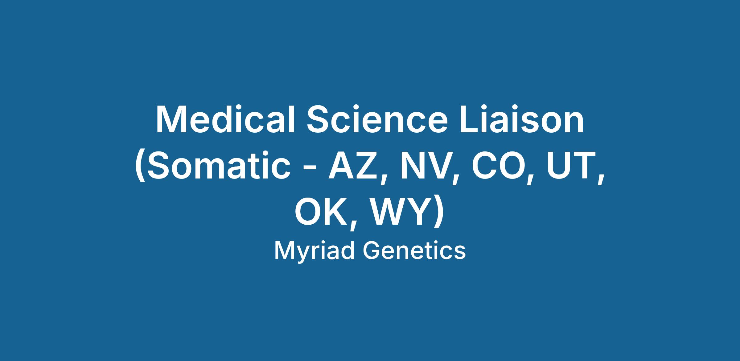 Myriad Genetics is seeking a Medical Science Liaison (MSL) to support the Somatic / Tumor Genomics portfolio within the Precision Oncology business unit. This field based, scientifically focused role supports liquid and tumor profiling across solid tumors, including NGS based assays, biomarker driven therapy selection, resistance mechanisms, and treatment monitoring.