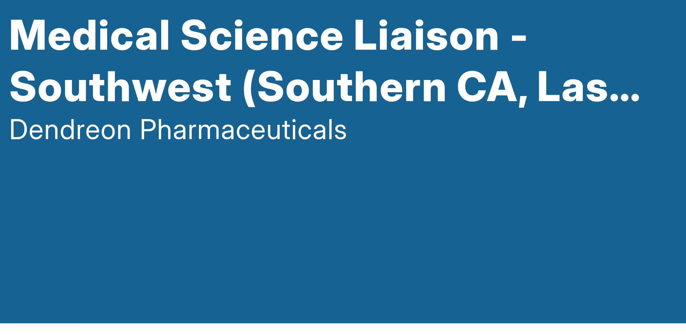 Dendreon is seeking a highly motivated Medical Science Liaison (MSL) in the Southwest US region to join its Medical Affairs team and support the only approved autologous immunotherapy for prostate cancer. The Dendreon MSL is a credentialed therapeutic and disease state expert who engages in scientific exchange with leaders in the areas of Urology, Oncology, and Immuno-Oncology. The MSL provides highly technical scientific information to national and regional external stakeholders to ensure their understanding of our product and gathers insights on areas of therapeutic interest to Dendreon.