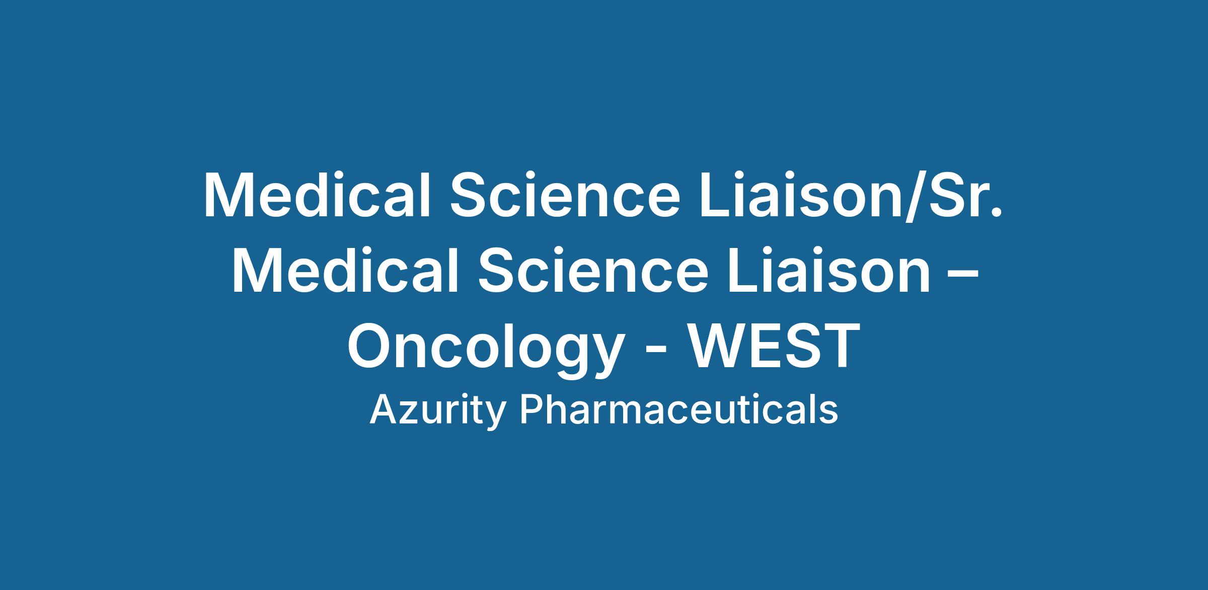 MSLs are the primary communicators of Azurity Pharmaceuticals within a specific geography with healthcare professionals and population-based decision makers. MSLs are the field scientific experts within Oncology and treatment options within this therapeutic area.