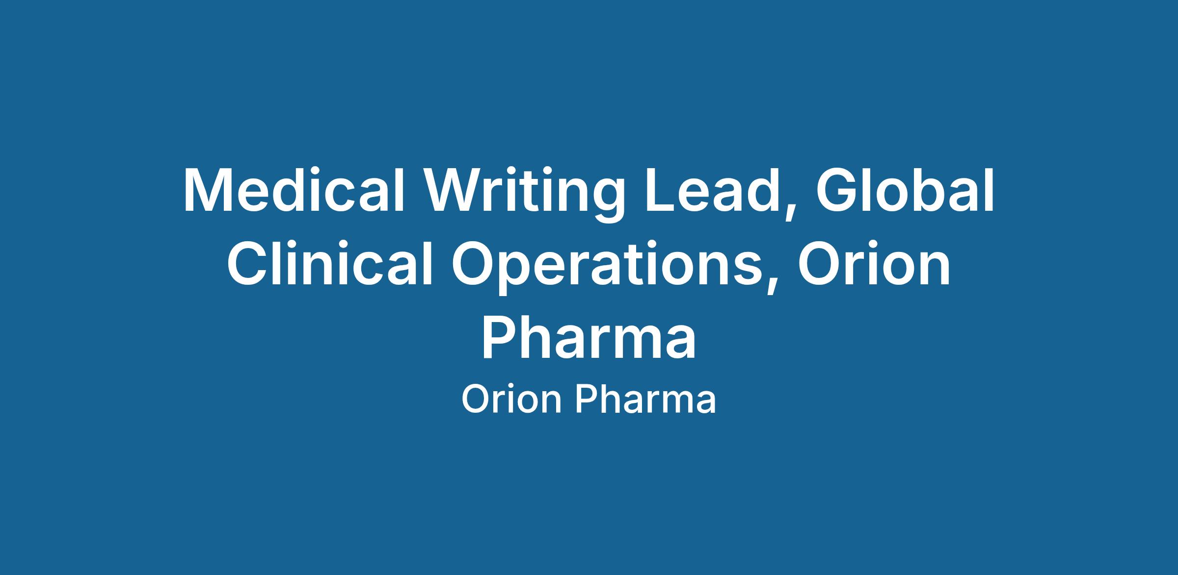 Medical Writing Lead, Global Clinical Operations, Orion Pharma
