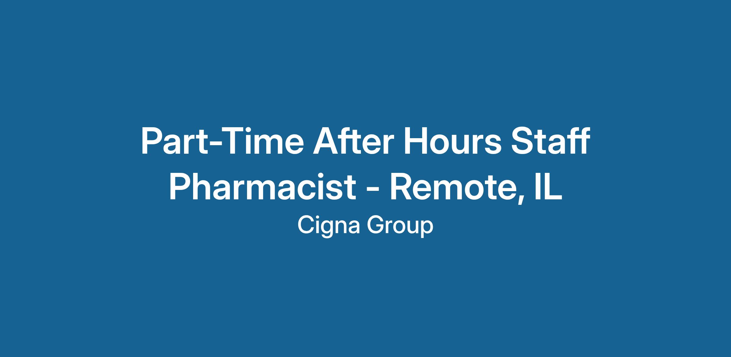 Licensure Requirements: Active IL pharmacist license required; additional state licenses preferred (IN, KS, MO, IA).