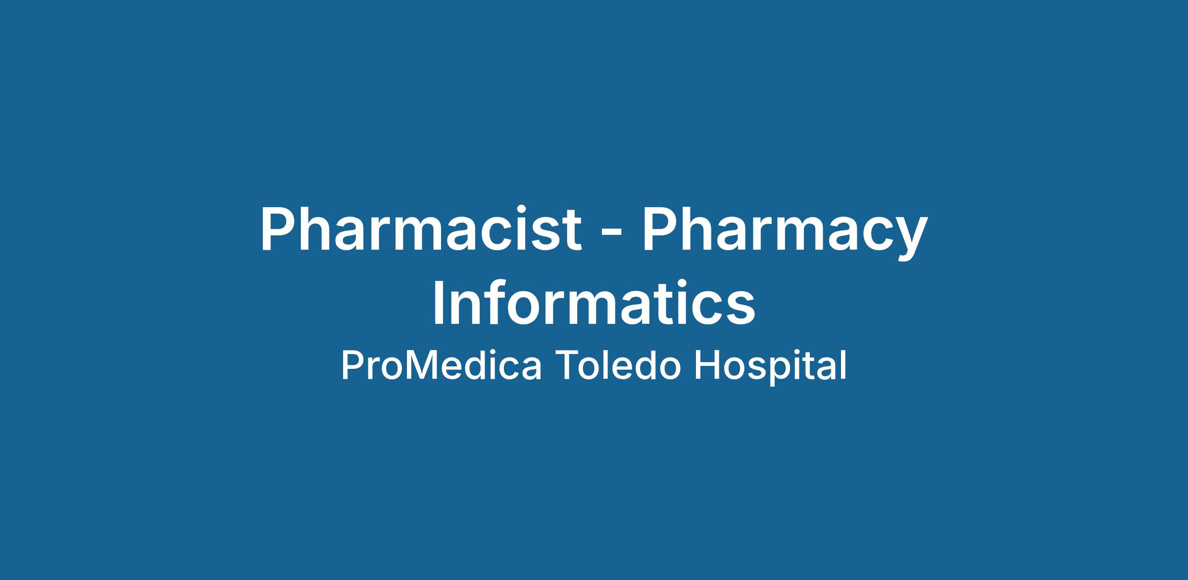 Informatics Pharmacist Specialist works in the build, implementation, and maintenance of automation and technology to optimize pharmacy practice, pharmacy systems, and the medication‐use process. Specializes in the medication process, from ordering to administration, and is responsible for effective process design, development, and implementation of the Electronic Medical Record and Clinical Decision Support. Supports pharmacists, physicians, nurses, and other clinicians as the resource for requests related to EMR and pharmacy system changes and additions. Provides EMR‐related staff education/training and assist with precepting of pharmacy residents.