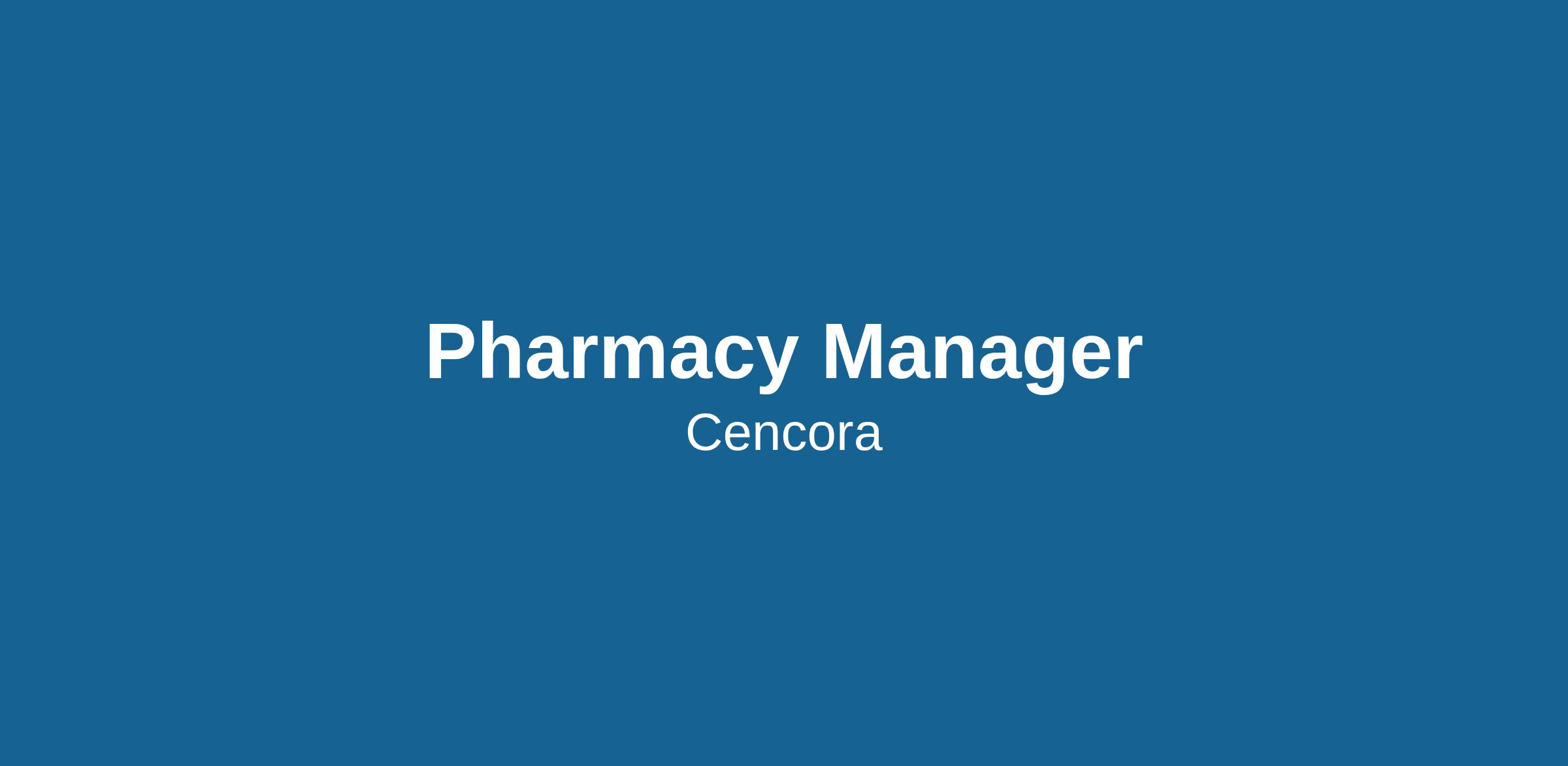 Our team members are at the heart of everything we do. At Cencora, we are united in our responsibility to create healthier futures, and every person here is essential to us being able to deliver on that purpose. If you want to make a difference at the center of health, come join our innovative company and help us improve the lives of people and animals everywhere. Apply today!