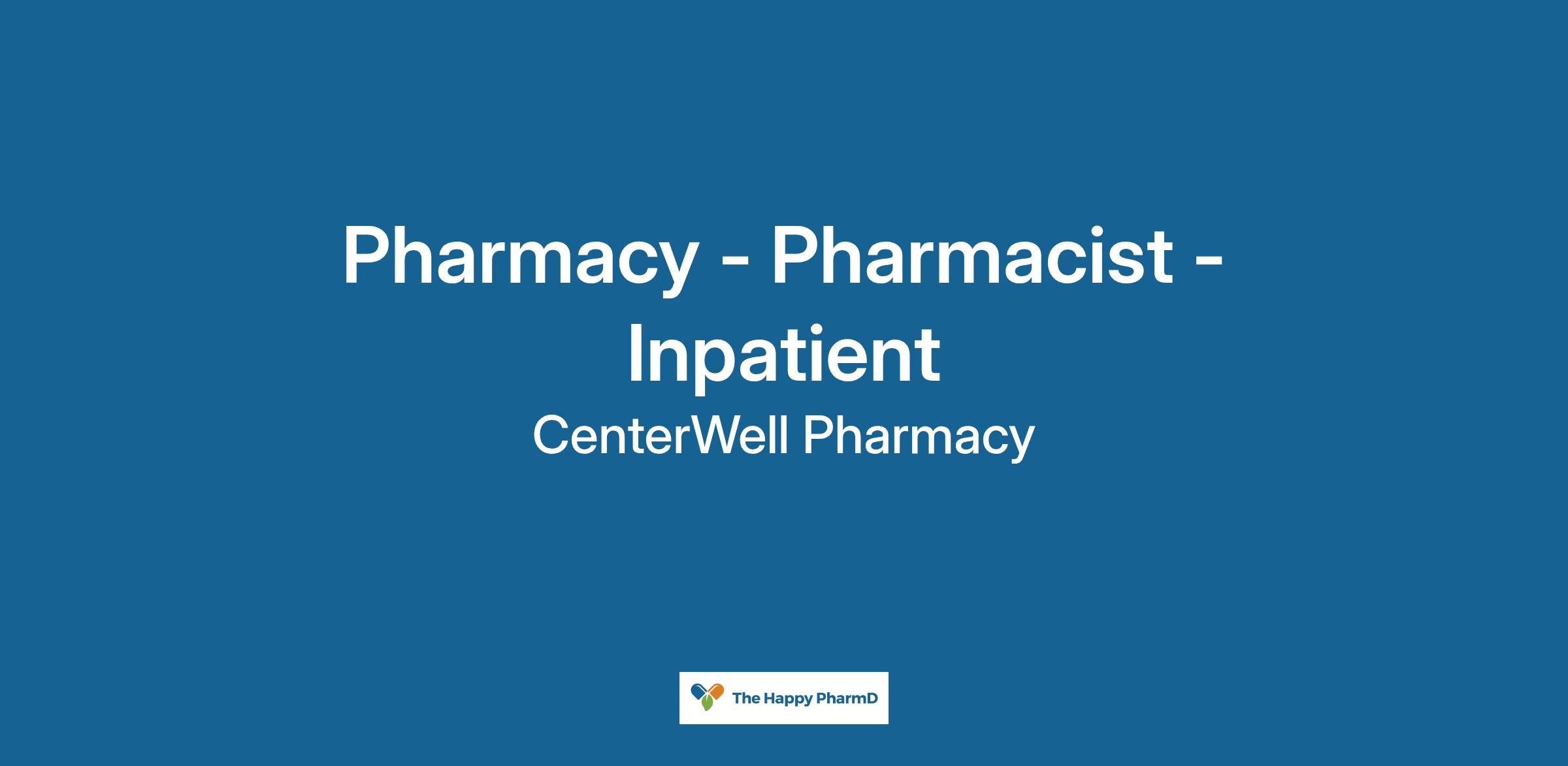 Pharmacy - Pharmacist - Inpatient