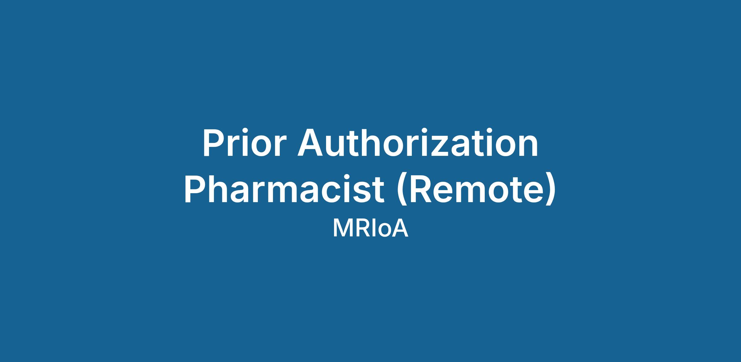 The PA Pharmacist is an important member of the pharmacy department. The PA Pharmacist works alongside the Supervisor, PA Pharmacists to set and meet production goals and to ensure each prior authorization is completed on time and in accordance with the individual client’s prior authorization criteria. The PA Pharmacists also serve as a drug information resource for MRIoA physicians and reviewers.