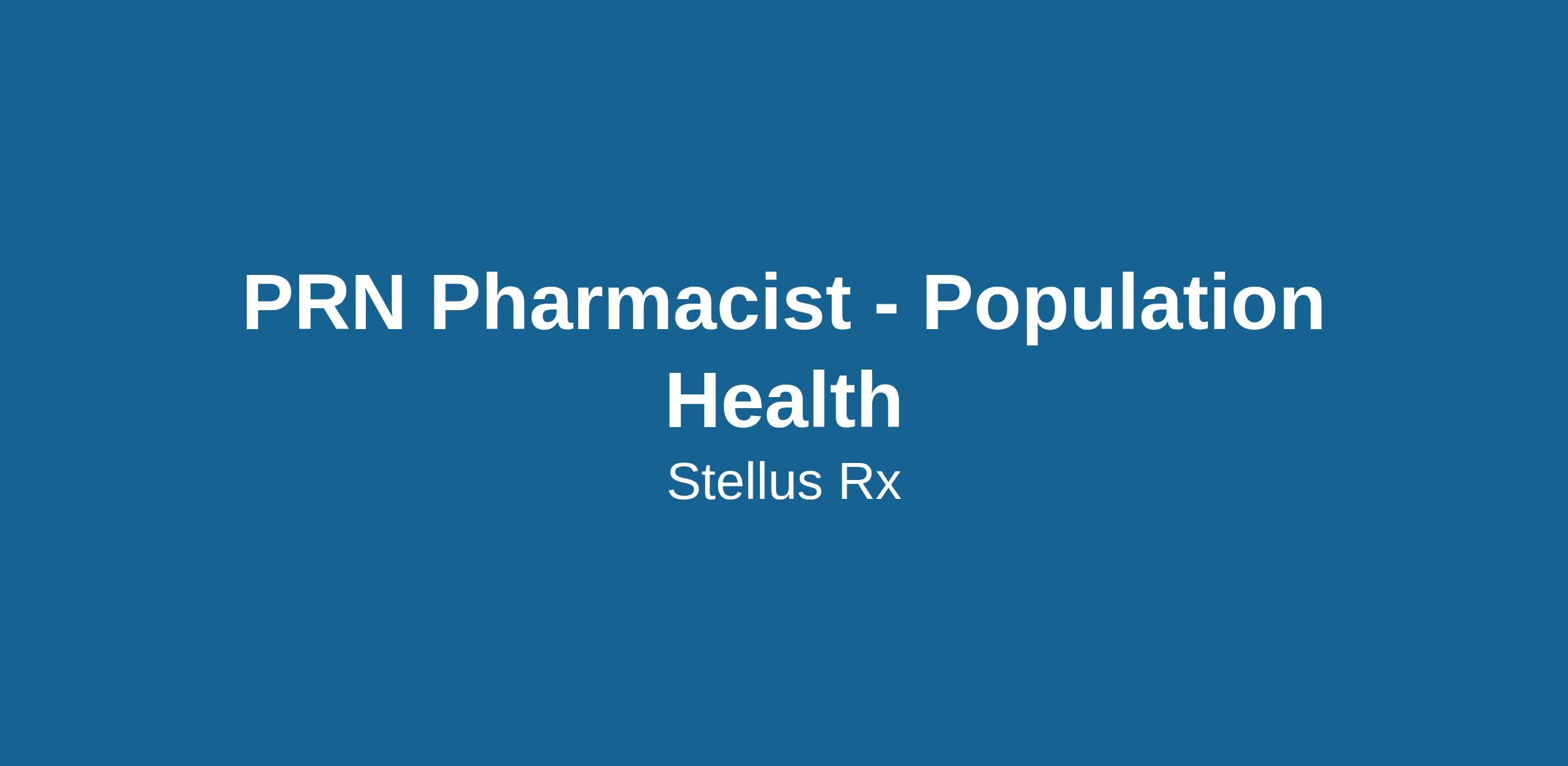 • The PRN, Population Health Pharmacist plays a pivotal role in developing, implementing, and overseeing strategies