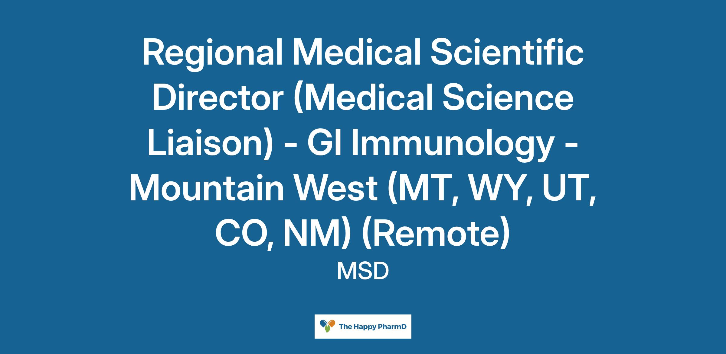 The Regional Medical Scientific Director (RMSD) is a credentialed (i.e., PhD, PharmD, DNP, MD) therapeutic and disease expert who engages in bidirectional exchange of scientific or medical information with Scientific Leaders (SLs). This MSL-type role provides balanced, factual, scientific information about non-product areas of interest to the Company and replies to scientific questions from SLs, including questions about Company products. The work of an RMSD is aligned to: Scientific Exchange, Research, Scientific Congress Support, and Scientific Insights.