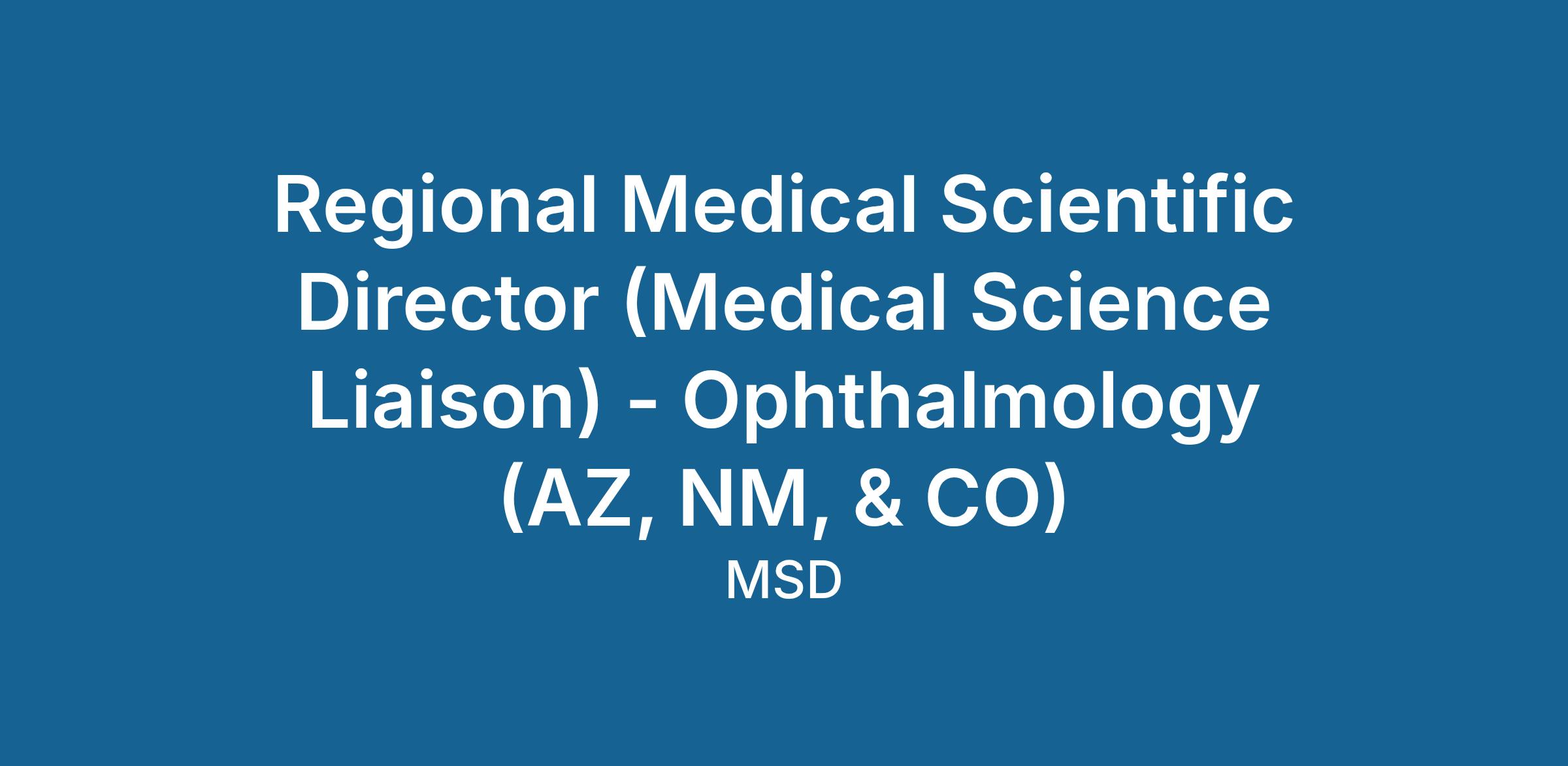 The Regional Medical Scientific Director is a credentialed (i.e., PhD, PharmD, OD, DO, or MD) therapeutic and disease expert who engages in bidirectional exchange of scientific or medical information with Scientific Leaders (SLs). The role provides balanced, factual, scientific information about non-product areas of interest to the Company and replies to scientific questions from SLs, including questions about Company products. The work of an Regional Medical Scientific Director is aligned to: Scientific Exchange, Research, Scientific Congress Support, and Scientific Insights.