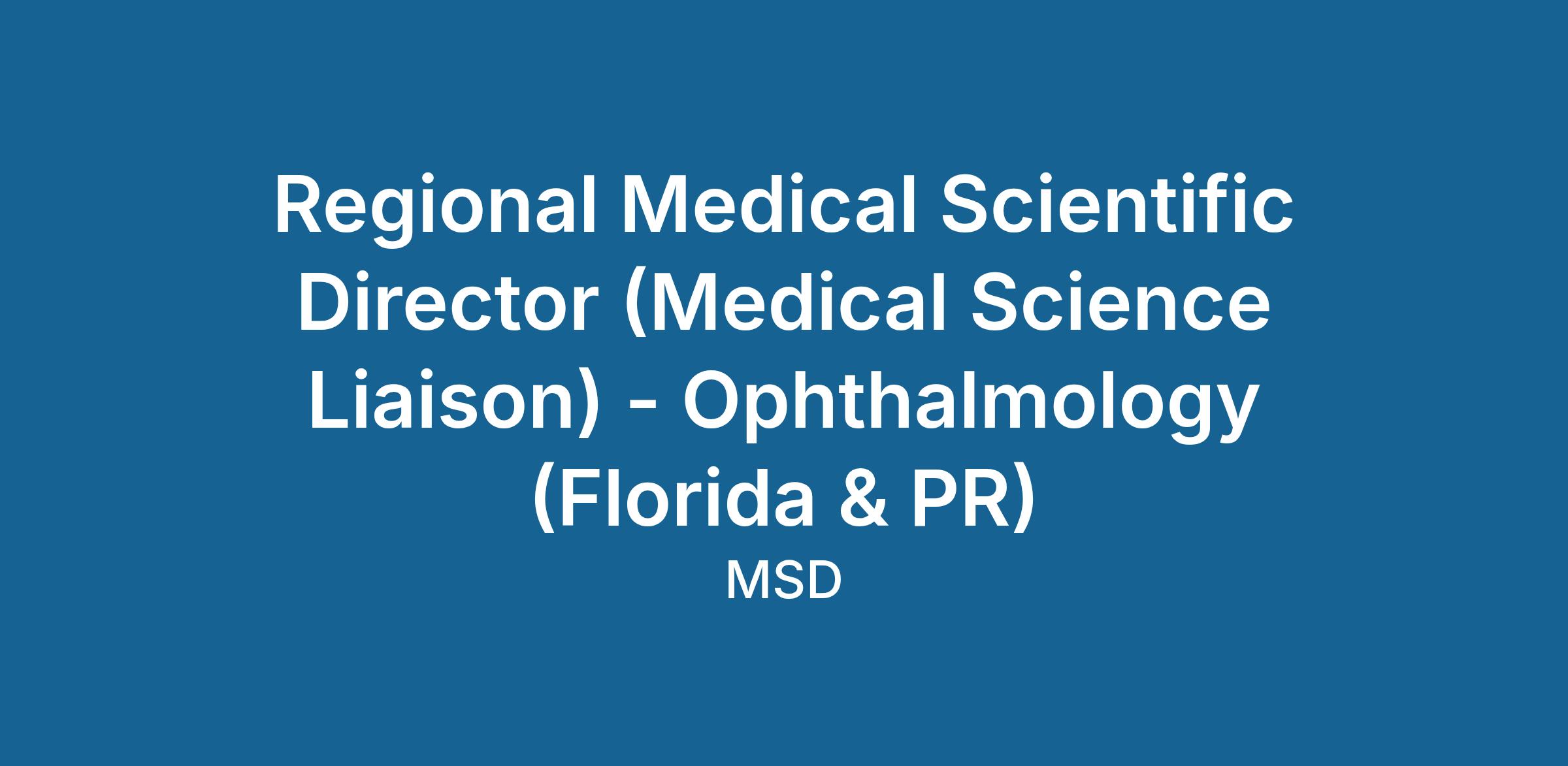 The Regional Medical Scientific Director (RMSD) is a credentialed (i.e., PhD, PharmD, OD, DO, or MD) therapeutic and disease expert who engages in bidirectional exchange of scientific or medical information with Scientific Leaders (SLs). The role provides balanced, factual, scientific information about non-product areas of interest to the Company and replies to scientific questions from SLs, including questions about Company products. The work of an RMSD is aligned to: Scientific Exchange, Research, Scientific Congress Support, and Scientific Insights.