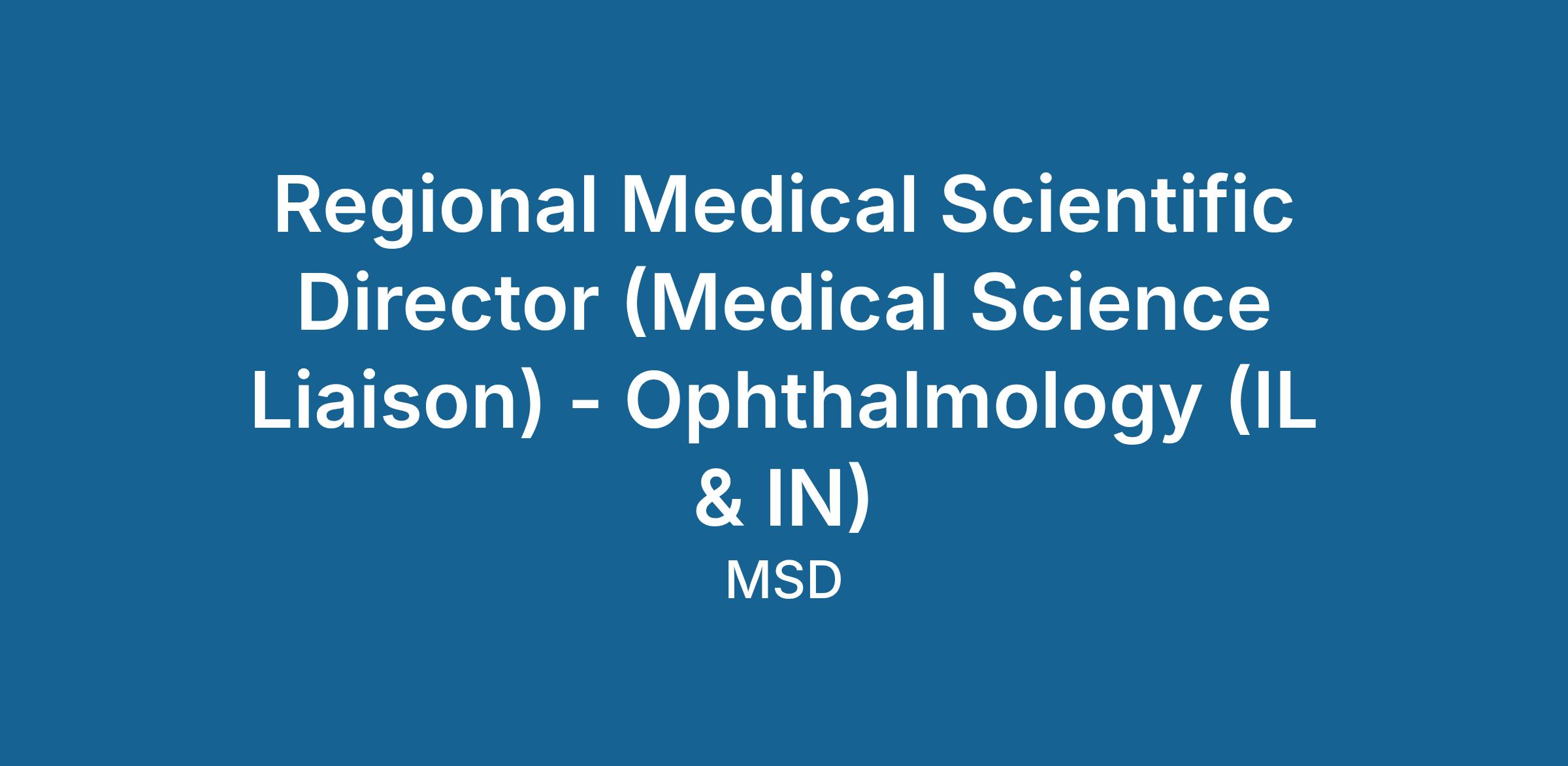 The Regional Medical Scientific Director (RMSD) is a credentialed (i.e., PhD, PharmD, OD, DO, or MD) therapeutic and disease expert who engages in bidirectional exchange of scientific or medical information with Scientific Leaders (SLs). The role provides balanced, factual, scientific information about non-product areas of interest to the Company and replies to scientific questions from SLs, including questions about Company products. The work of an RMSD is aligned to: Scientific Exchange, Research, Scientific Congress Support, and Scientific Insights.