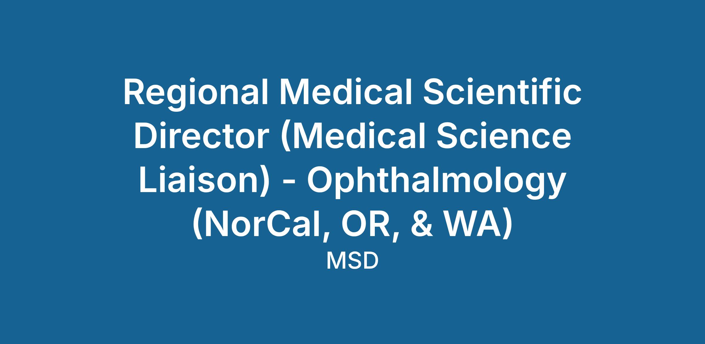 The Regional Medical Scientific Director (RMSD) is a credentialed (i.e., PhD, PharmD, OD, DO, or MD) therapeutic and disease expert who engages in bidirectional exchange of scientific or medical information with Scientific Leaders (SLs). The role provides balanced, factual, scientific information about non-product areas of interest to the Company and replies to scientific questions from SLs, including questions about Company products. The work of an RMSD is aligned to: Scientific Exchange, Research, Scientific Congress Support, and Scientific Insights.
